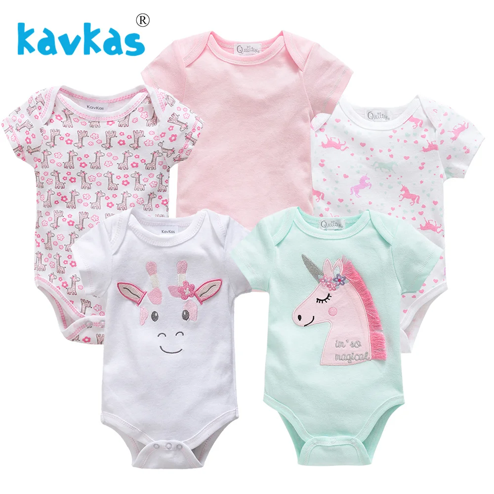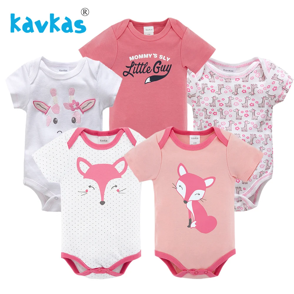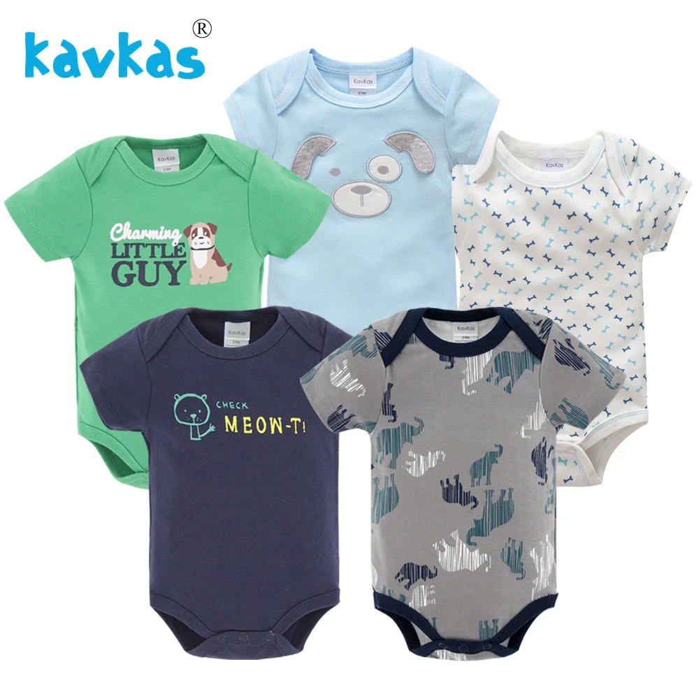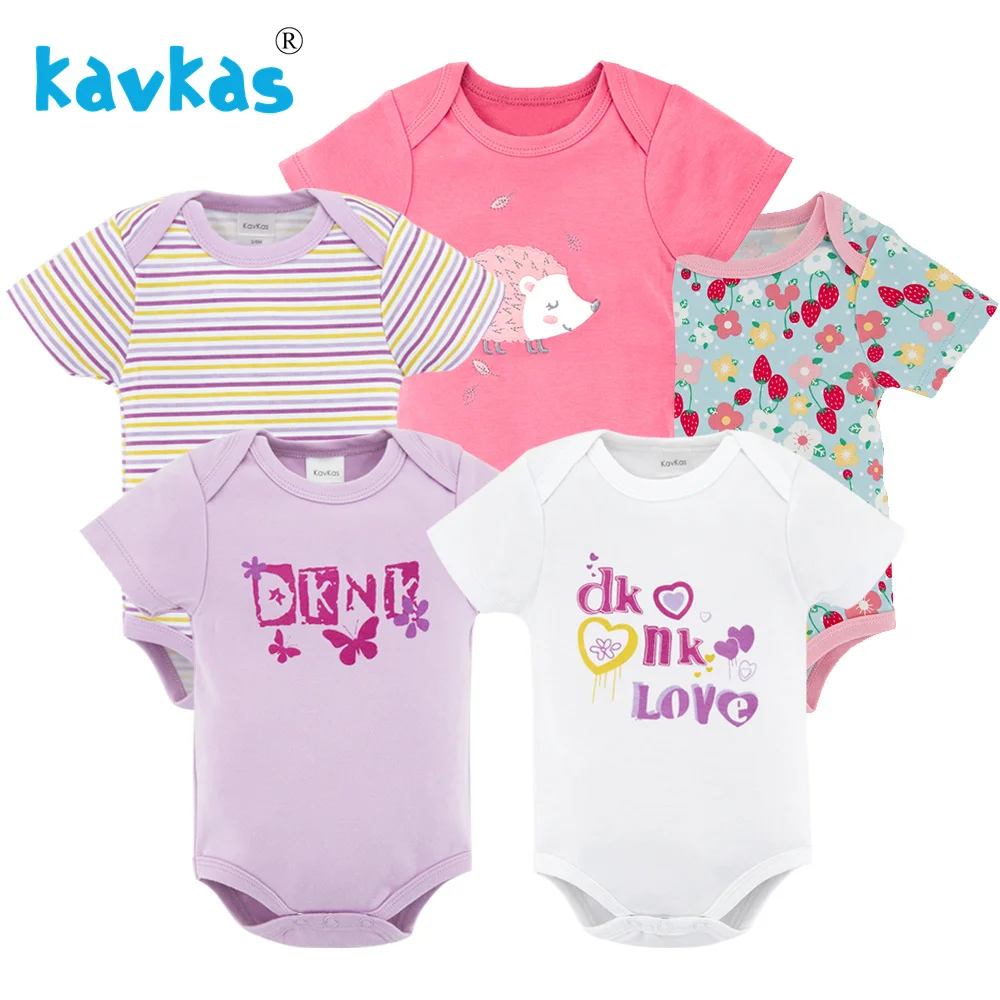 Детские комбинезоны Kavkas, 5 шт.лот, с коротким рукавом, из 100% хлопка, Одежда для новорожденных мальчиков и девочек