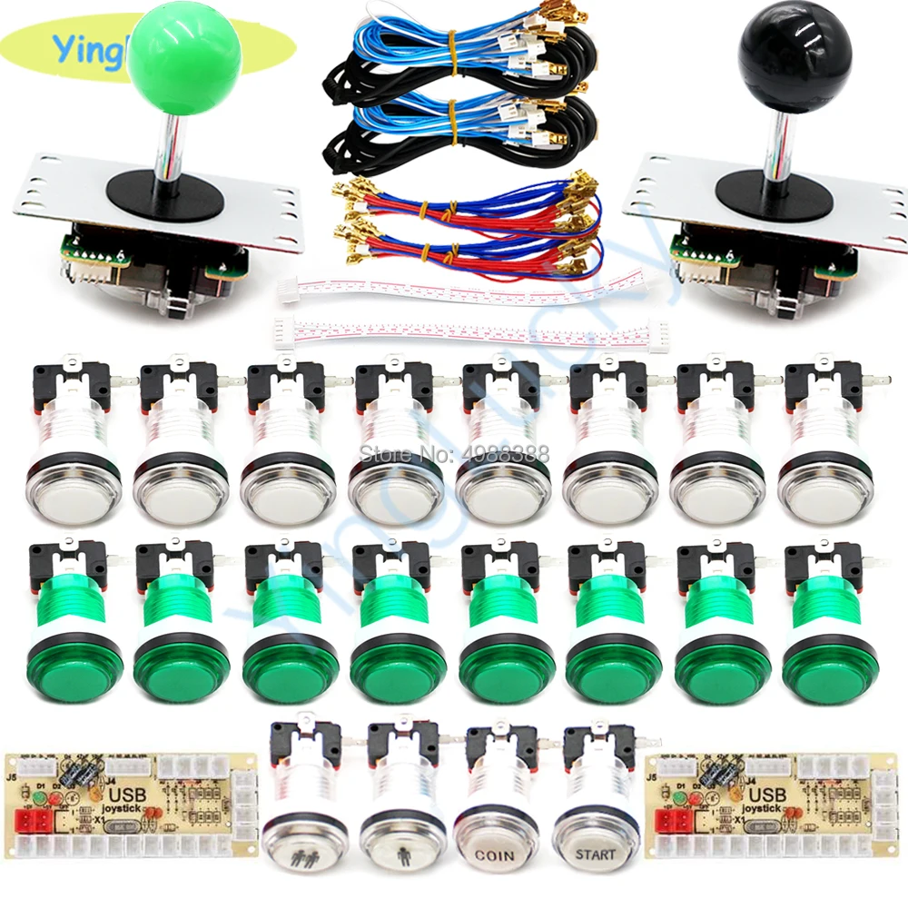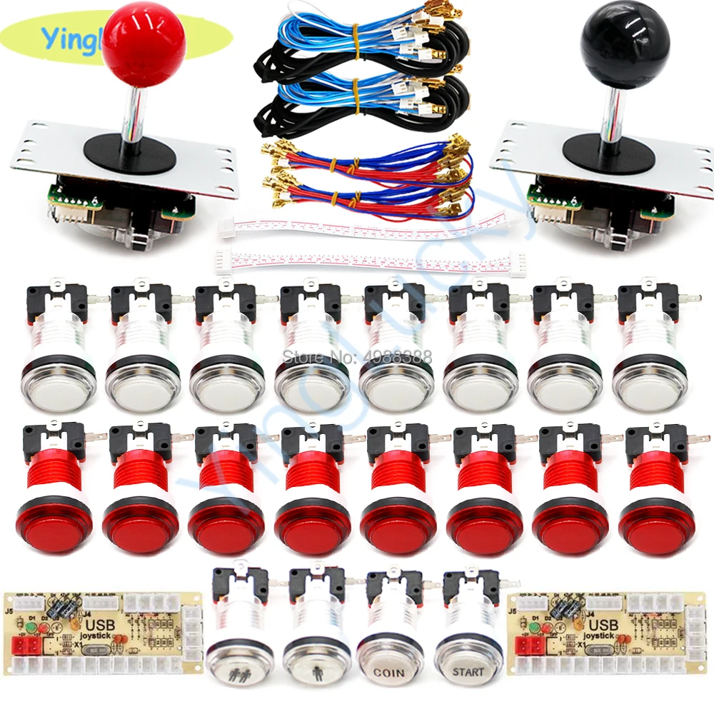 Набор сделай сам для аркадных игр, 2 игрока с 20 светодиодный ными аркадными кнопками + 2 джойстика + 2 USB-кодировщика + набор кабелей