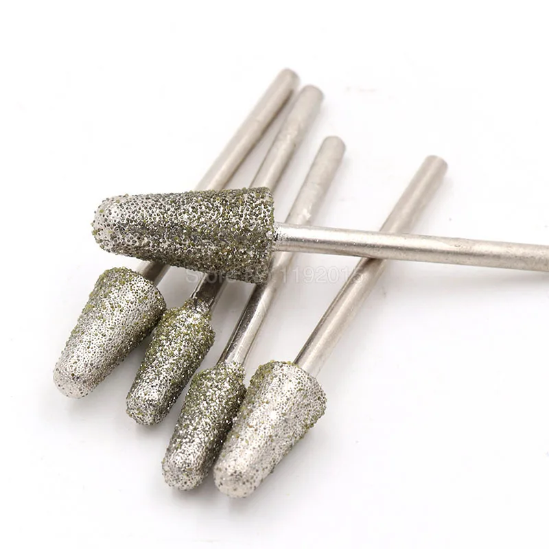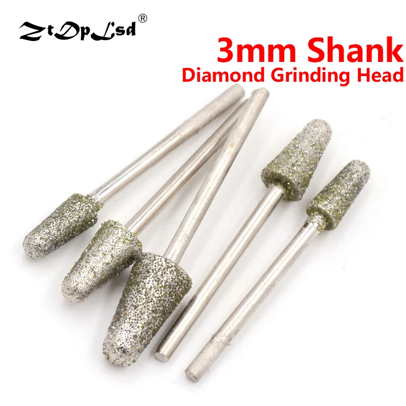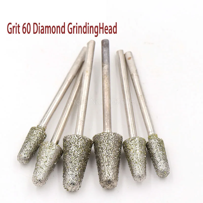ZtDpLsd 1 шт. зернистость 60 3 мм хвостовик конуса алмазная шлифовальная головка конус очки с покрытием резьба с декоративными швами, лапидарные инструменты Темный нефрит камень Мрамор