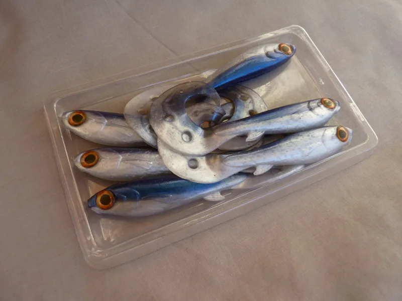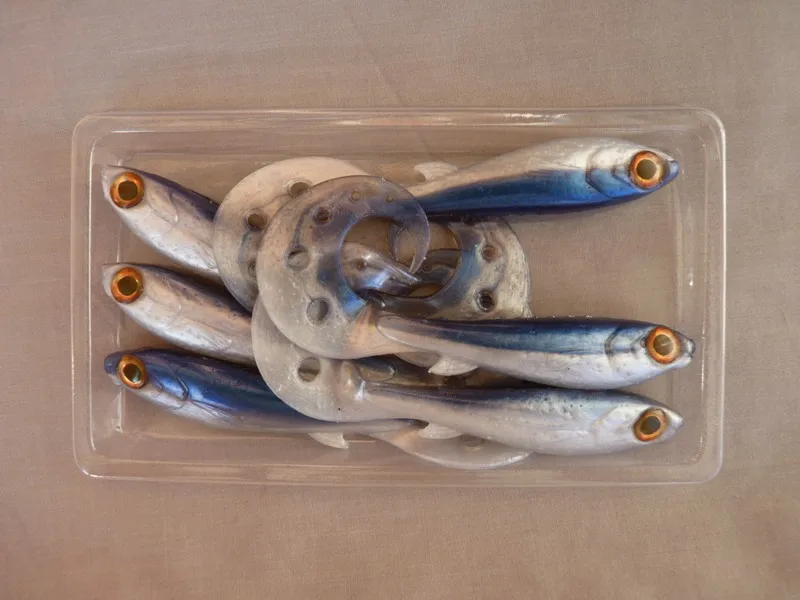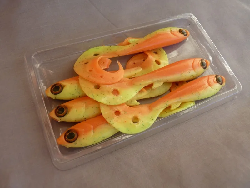 Мягкая резина хорошего качества и приятный запах рыбы или моллюсков без пластика Я рекомендую его по цене