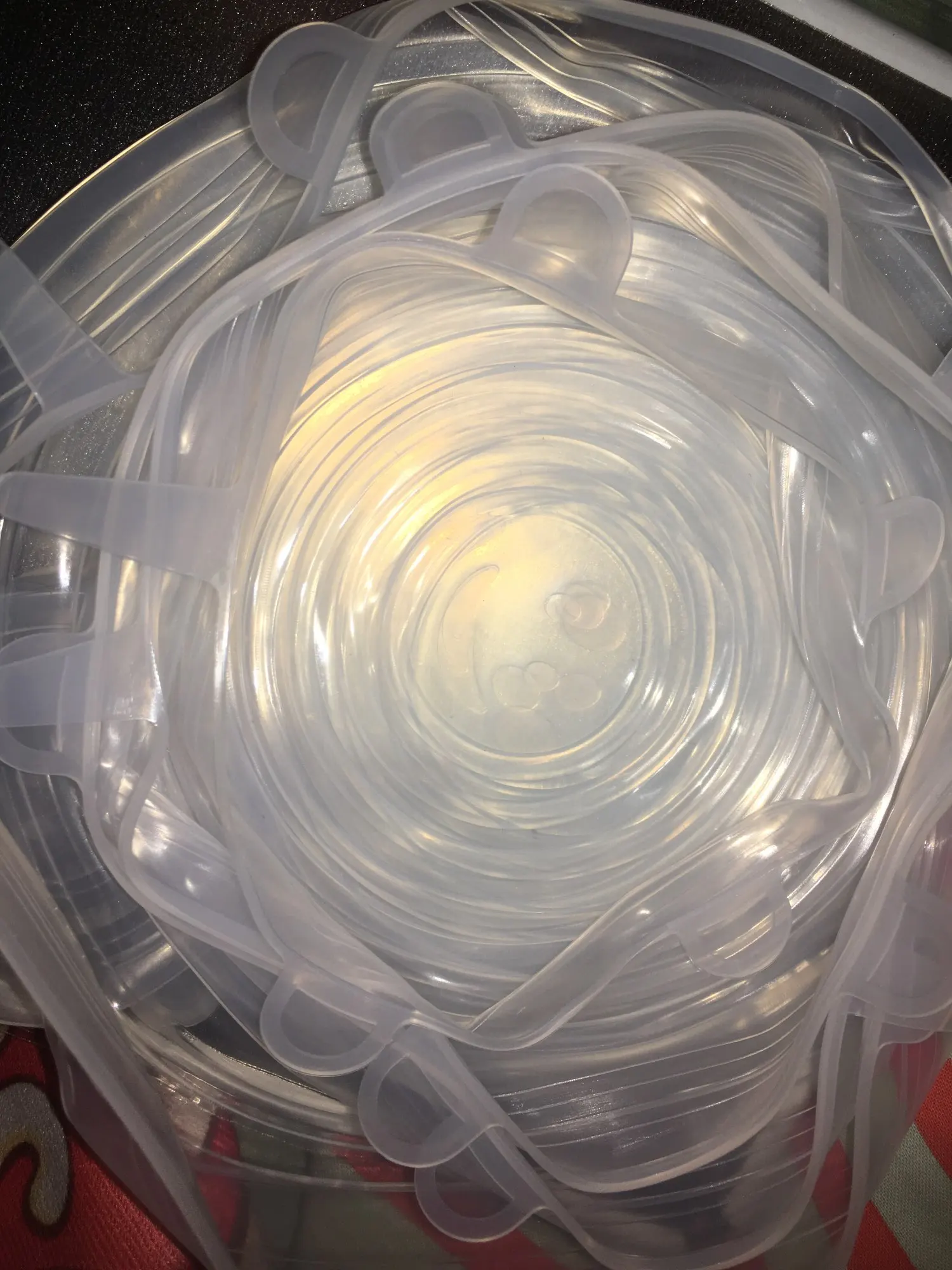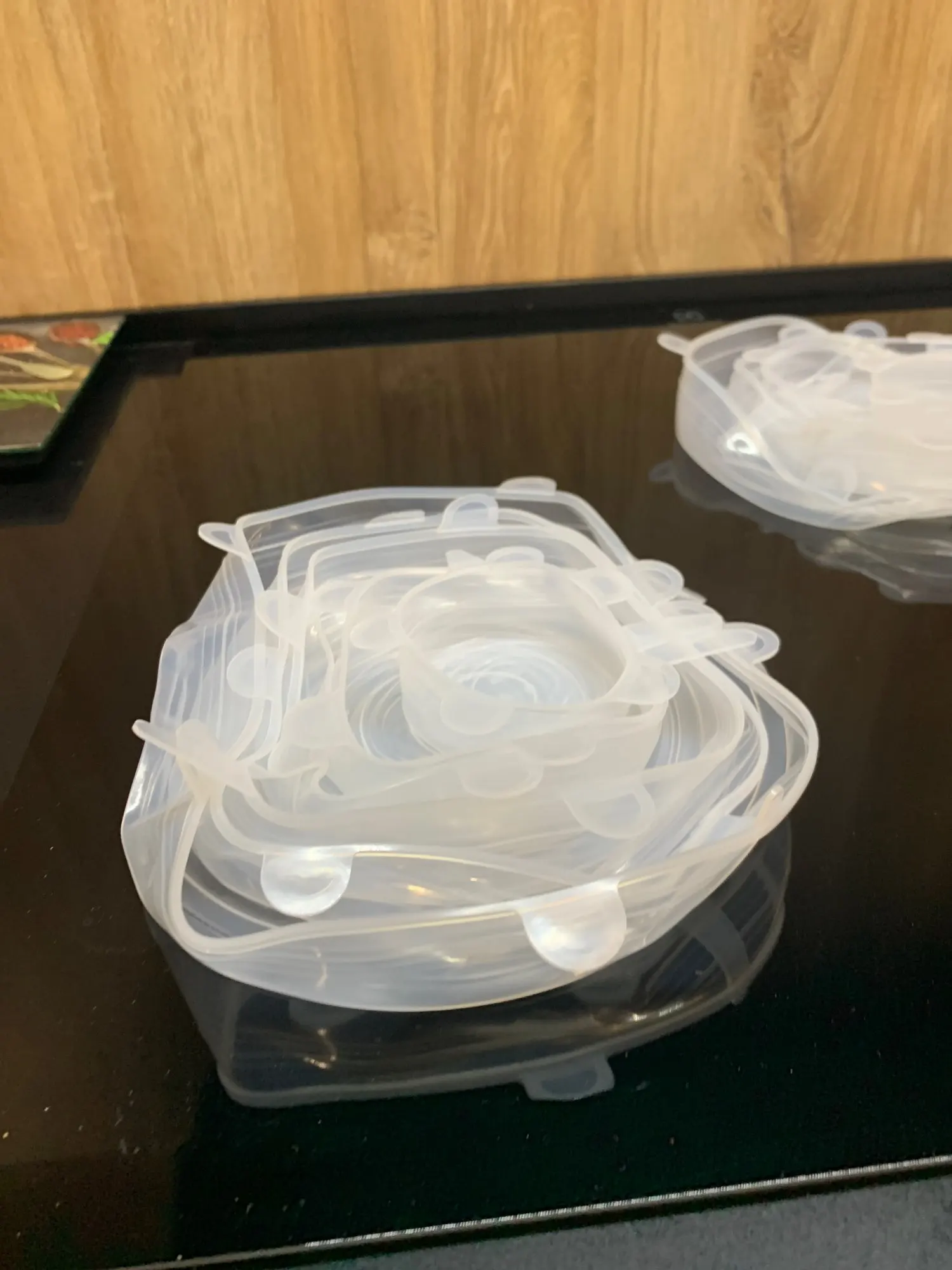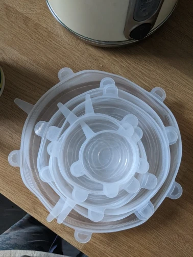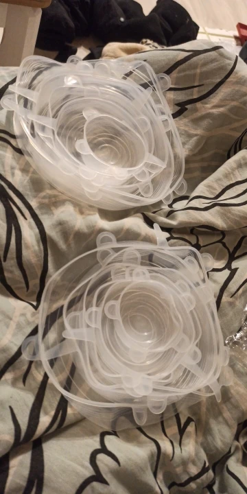 Отличные крышки, жене понравились. Самая маленькая на стакан, самая большая налезла на 5 литровую кастрюлю, но предварительно прогрел горячей водой. Между собой очень сильно склеенные пришли, тоже спасла горячая вода. Продавцу спасибо, магазин рекомендую.