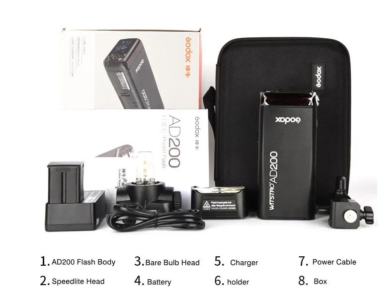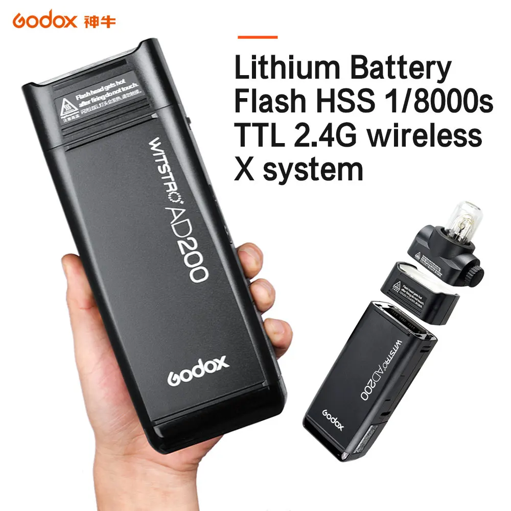 Карманная вспышка GODOX AD200 с поддержкой TTL, 2,4 ГГц с поддержкой высокоскоростной синхронизации 1/8000 с, вспышка с двойной головкой 200 Вт, с литиевой аккумуляторной батареей 2900 мАч
