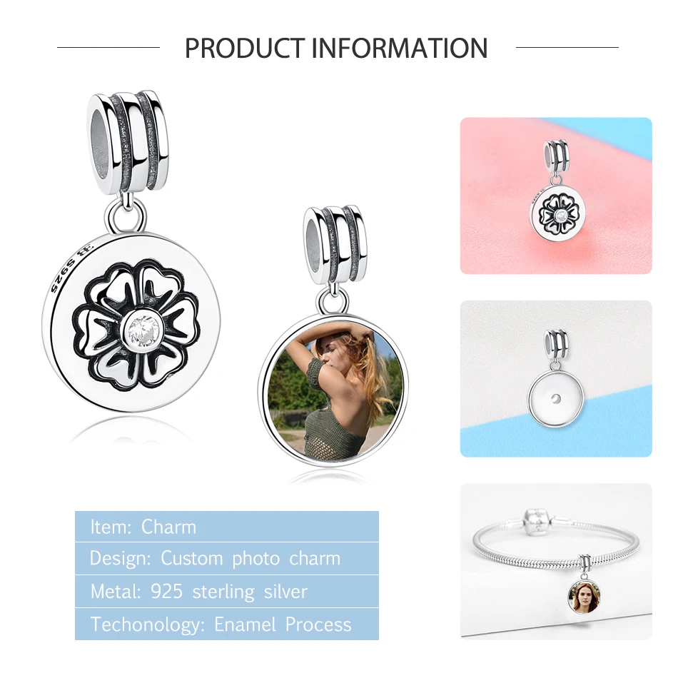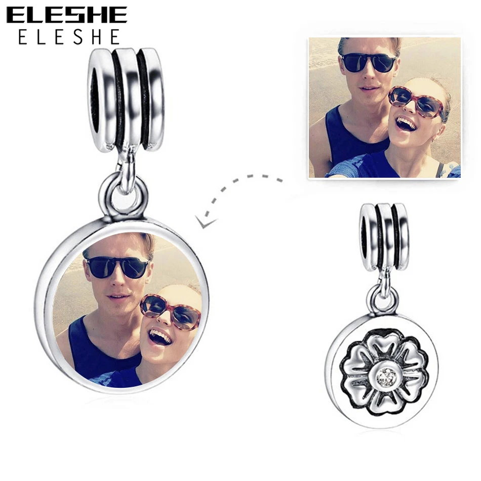 ELESHE Персонализированные 925 стерлингового серебра на заказ фото бис круглой формы в форме цветка кулон шарма подходит Элитный бренд браслет для женщин, сделай сам, ювелирное изделие