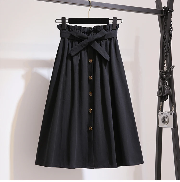 Юбка-миди с высокой талией, однотонная, трапециевидная, с карманами, повседневная, модная, 2019
