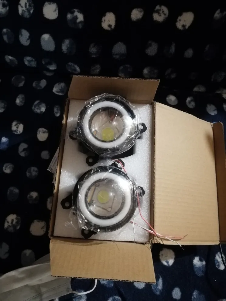 Без фото. Пришли целые, коробка не мятая. Не устанавливал ещё, потом дополню отзыв, пришли впринципе быстро, примерно 2 недели. Внутри ДИОД припаянный, не ЛАМПА.