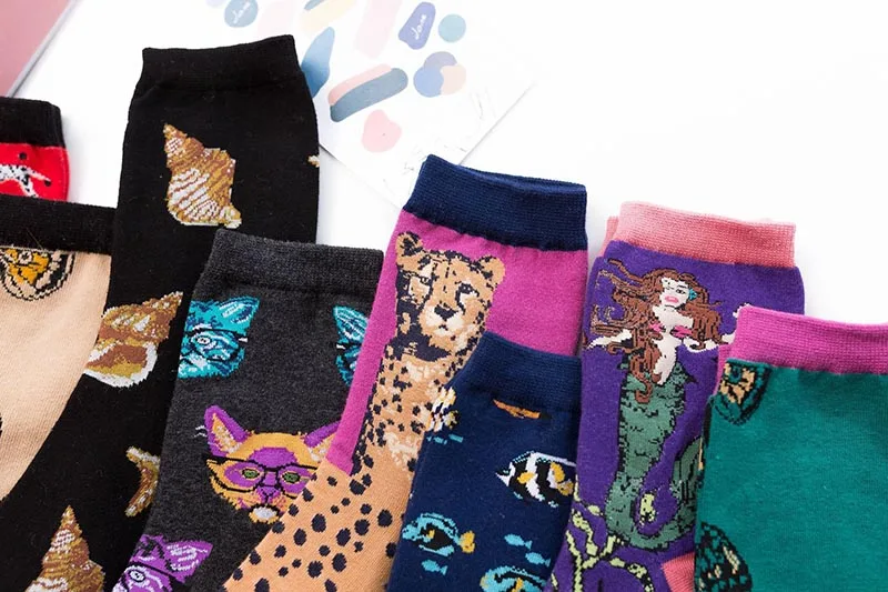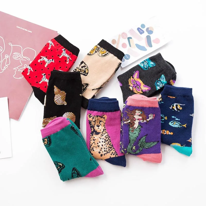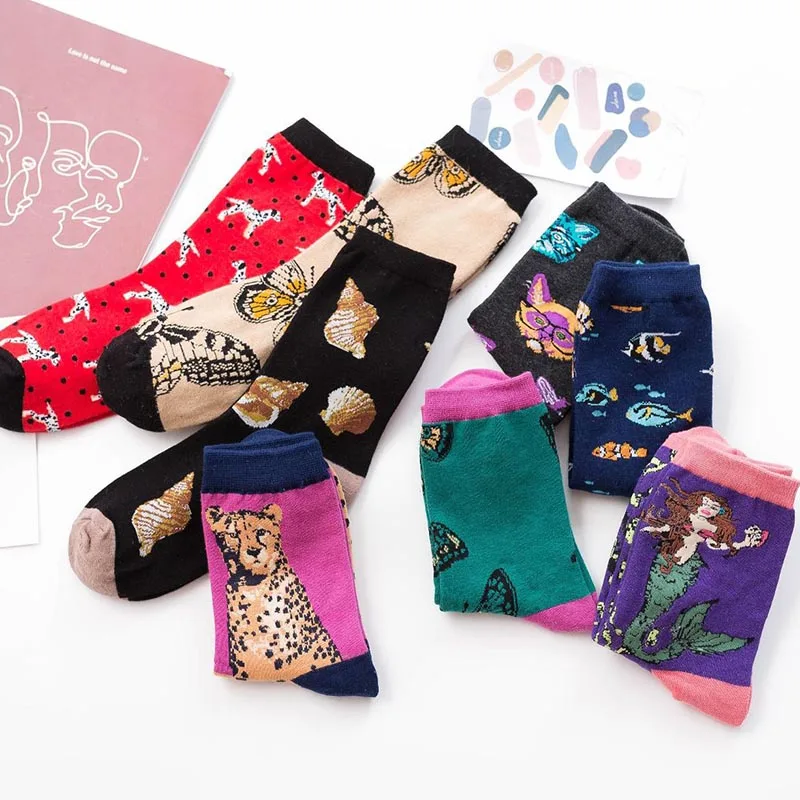 COSPLACOOL Японские смешные носки Харадзюку для женщин, милые носки русалки с рыбками, жаккардовые женские носки в Корейском стиле