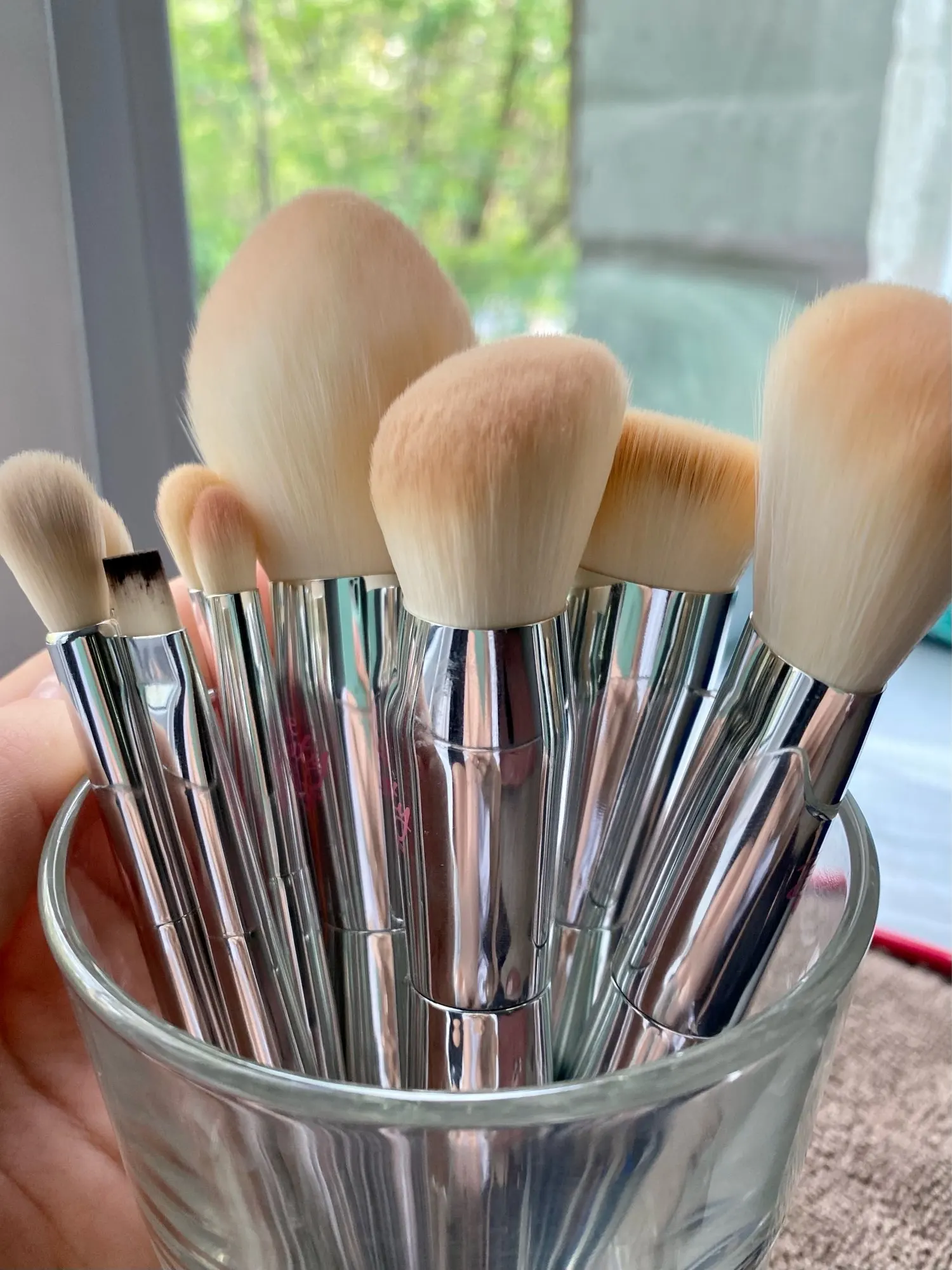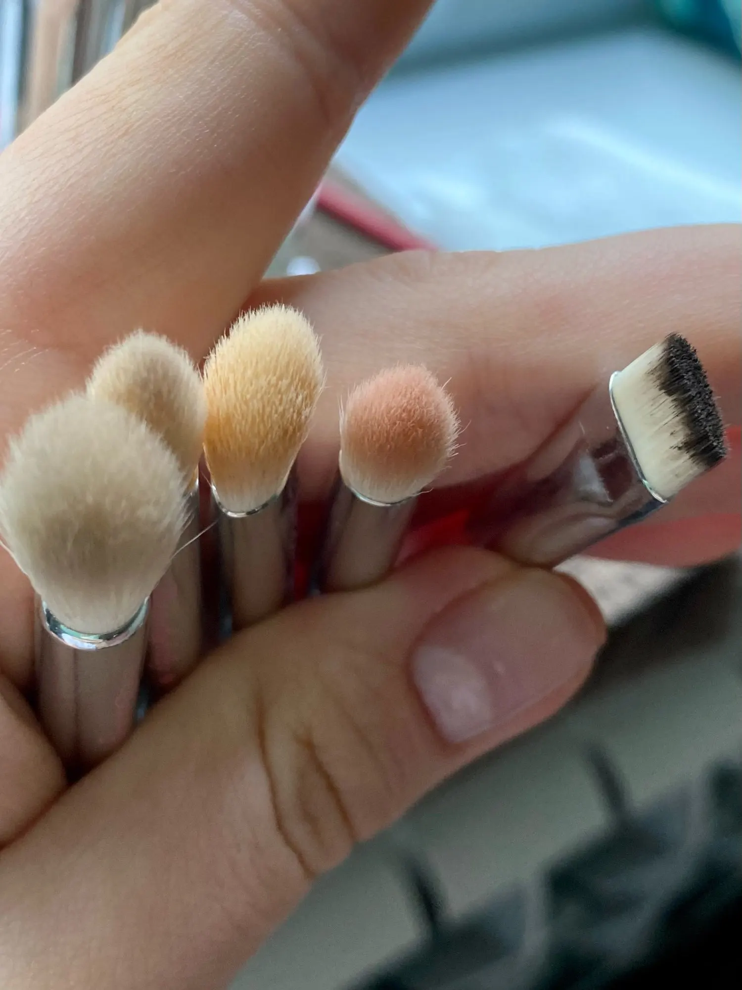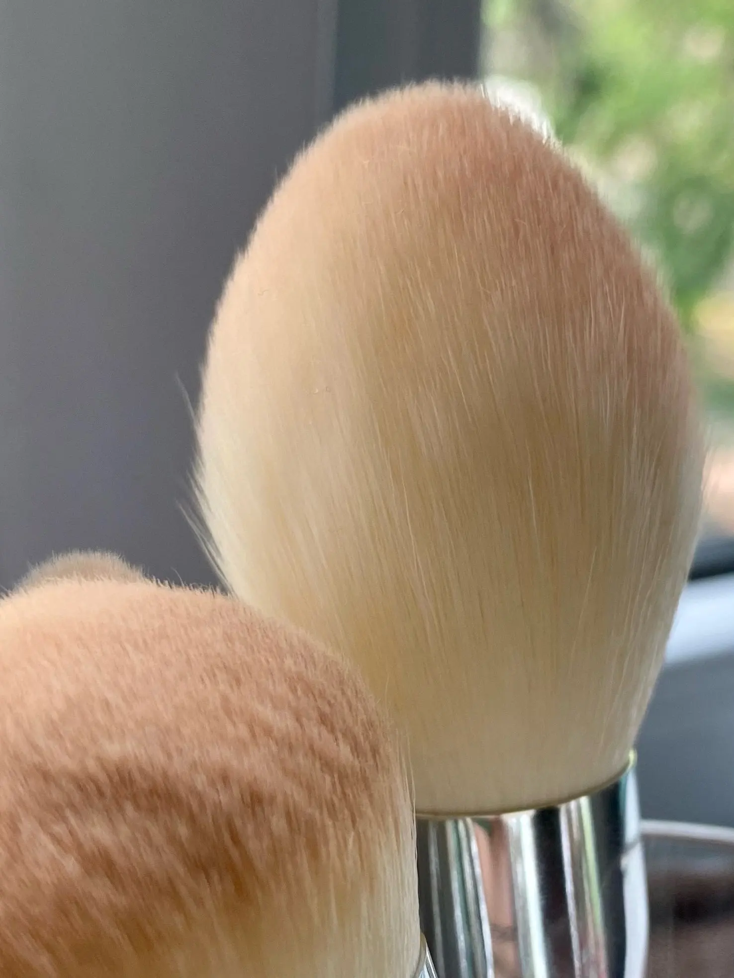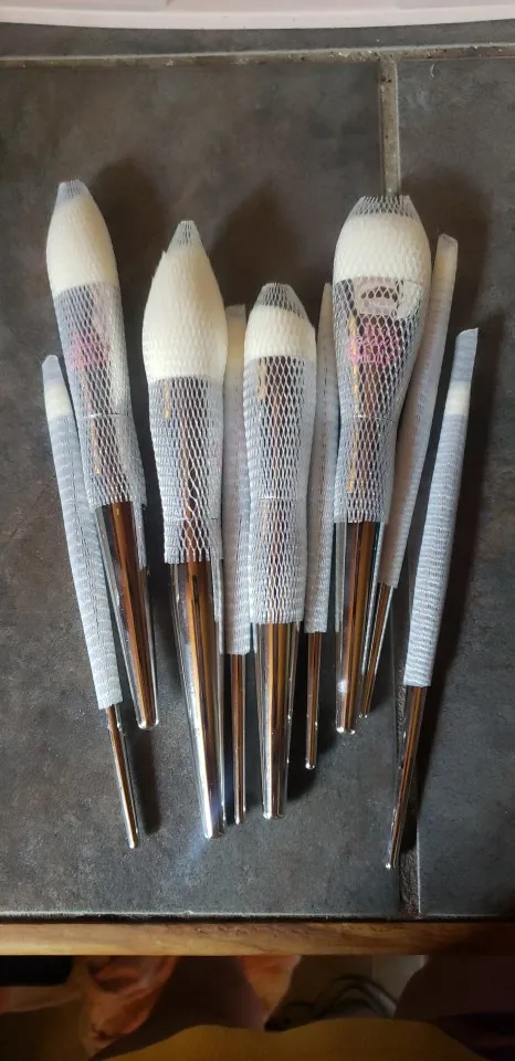 Офигенные кисти! Увидела такие в числе прочих у крутого визажиста Алматы и заказала себе для домашнего использования. Они такие кайфовые! Особенно самая большая - наконец-то сухой контуринг получился идеально, а лицо кайфануло от нежных прикосновений) лишних кистей нет, использовала все за раз. На фото кисти после первого использования, поэтому грязные. А вообще все идеально белые и отлично отмываются. Ворс вроде синтетика, но очень качественная. Кстати видела как такие кисти продают в проф магазине в 3,5 раза дороже.