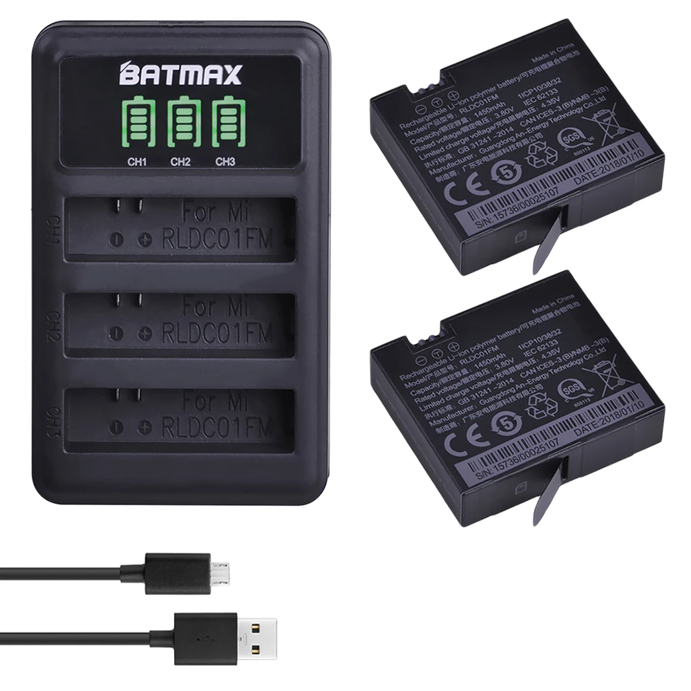 Batmax 2 шт 1450mAh Mijia оригинальный аккумулятор + LED USB 3 слота зарядное устройство для Xiaomi mijia мини спортивные экшн-камеры
