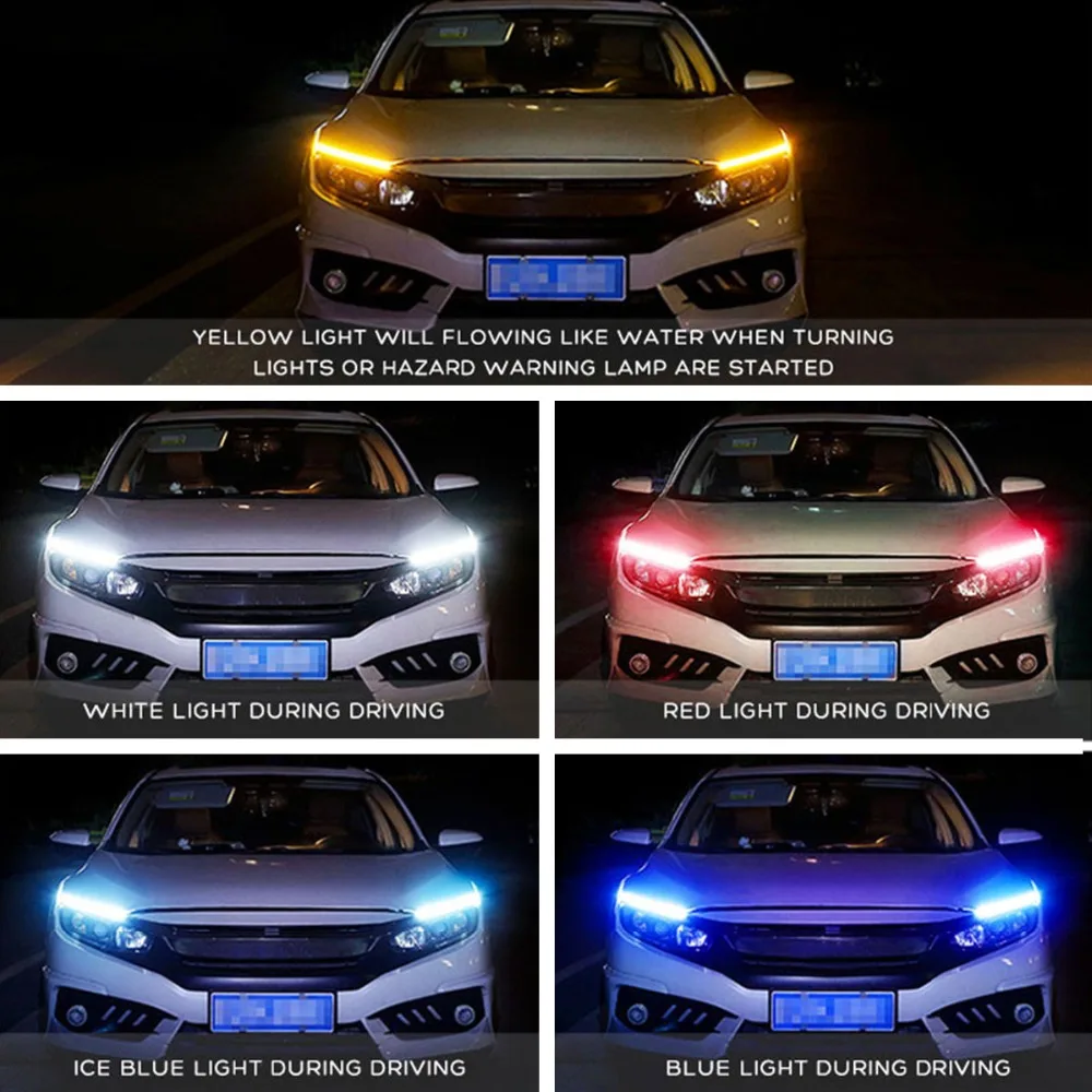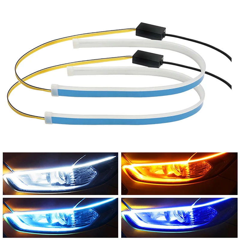 2x ультратонкие автомобили DRL светодиодный дневные ходовые огни белый сигнал поворота желтая направляющая полоса для фар в сборе Прямая поставка