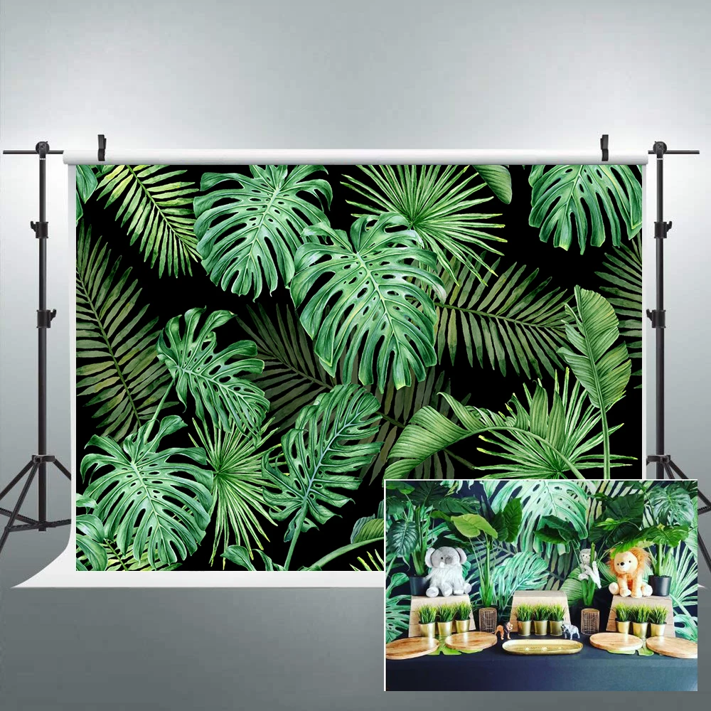 Тропические вечерние фоны с изображением листьев джунглей на день рождения, Декорации для фотосъемки, видео на YouTube, Детские B-49 для душа