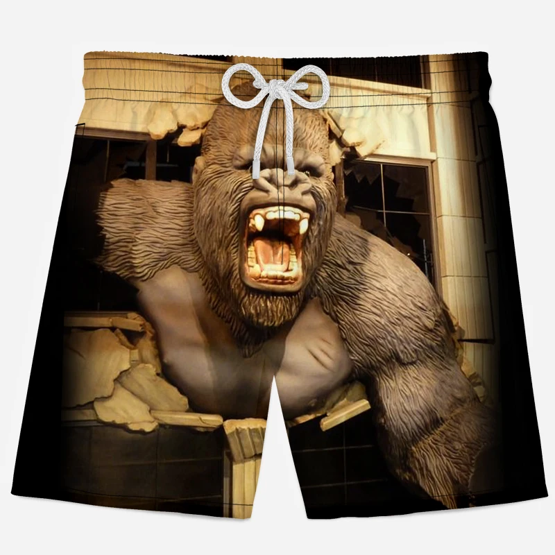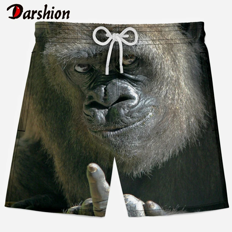 Повседневные мужские шорты с 3D принтом обезьяны, дышащие быстросохнущие мужские шорты с 3d принтом животных, новинка 2019, летние мужские пляжные шорты