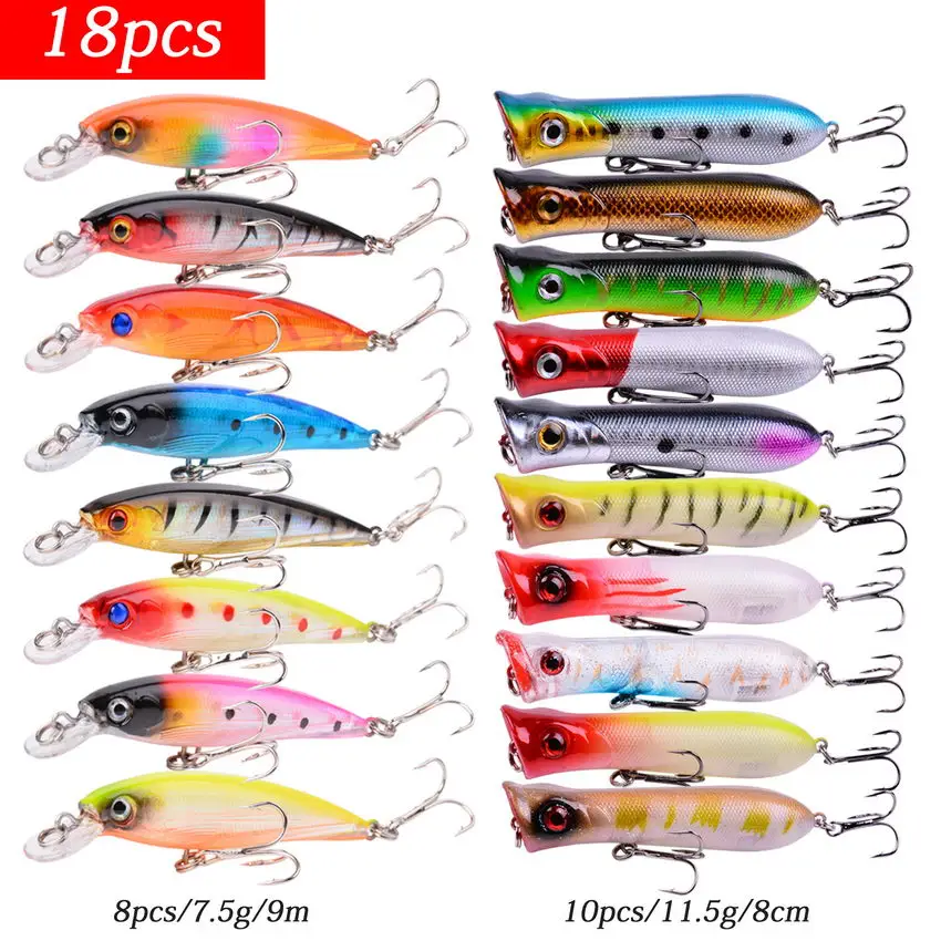 Смешанные наборы рыболовных приманок, кренкбейт, гольян, Поппер, ВИБ, Мягкая приманка, приманки для окуня, воблер, набор, Реалистичная искусственная Снасть