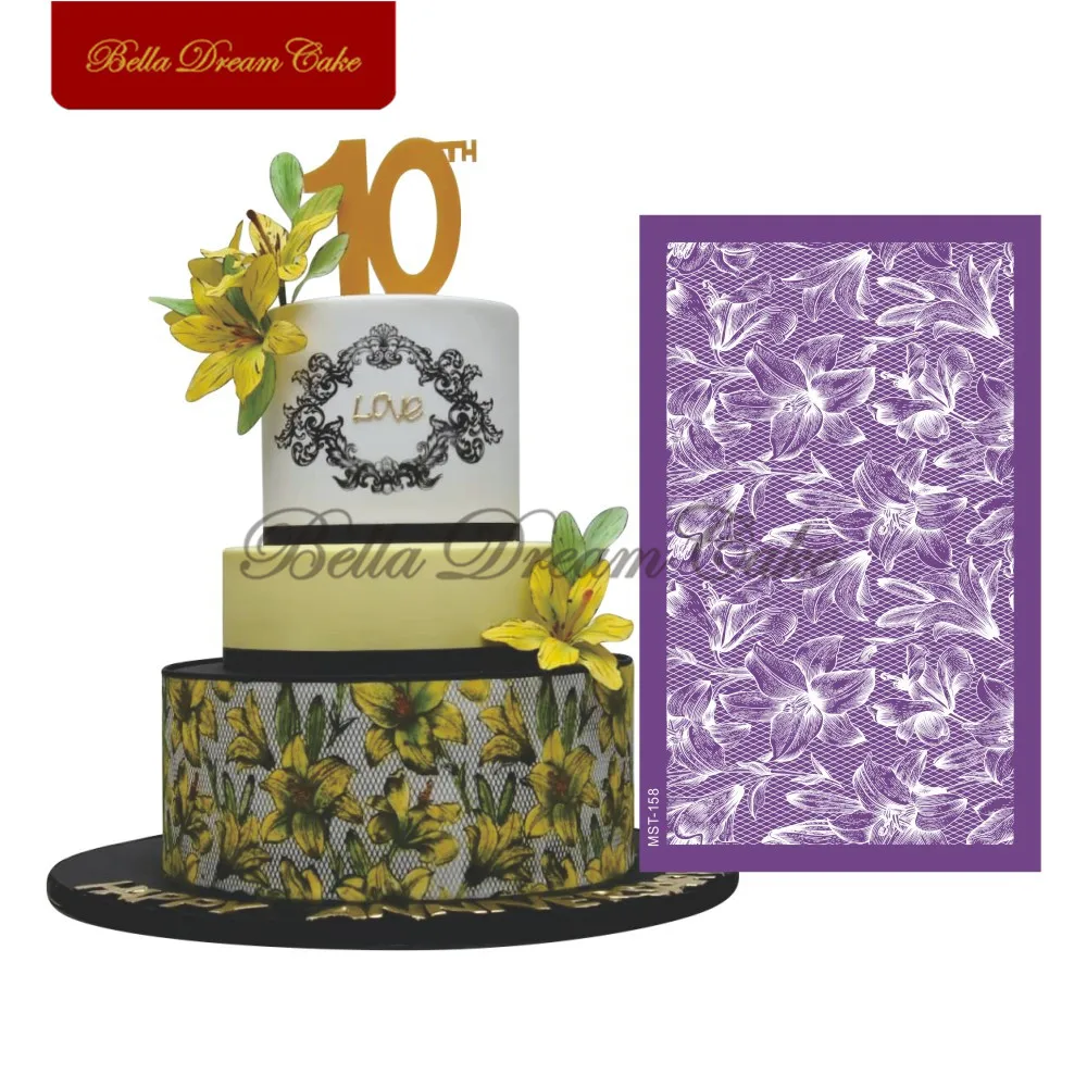 Симпатичные сетчатые трафареты для торта с цветами лилии, кружевная...