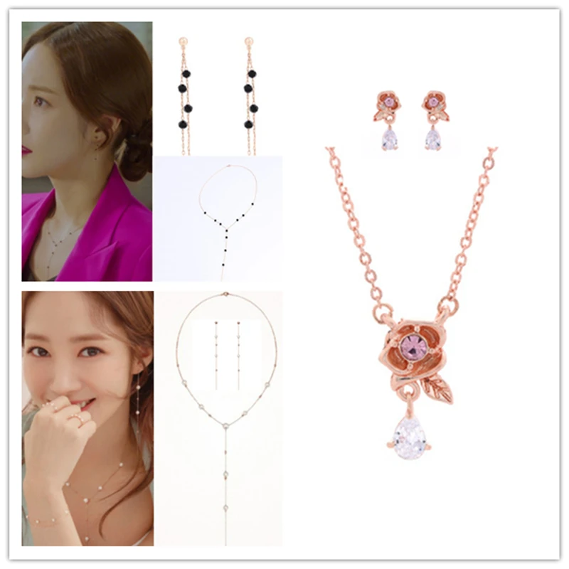 Серьги + ожерелье парка мин молодая драма ТВ Корейская звезда такие же корейские элегантные для женщин серьги букле серьги