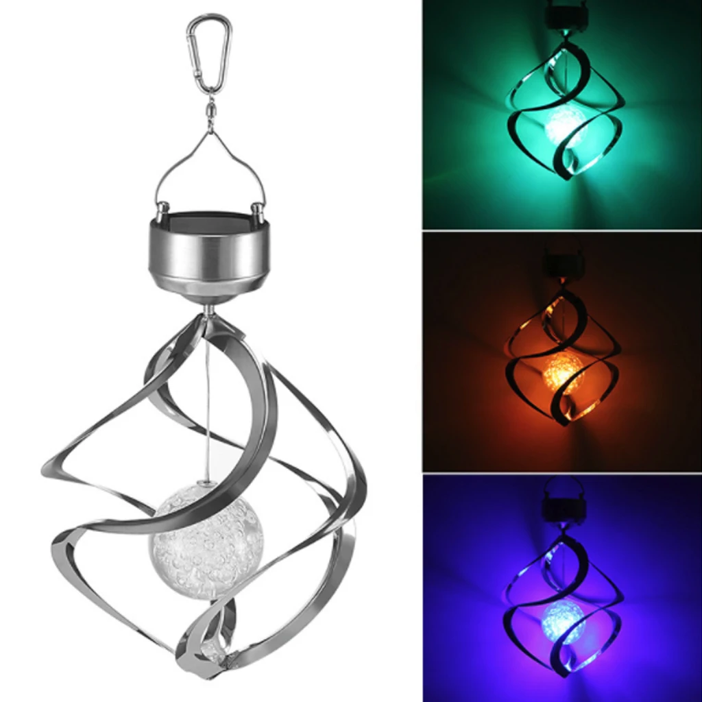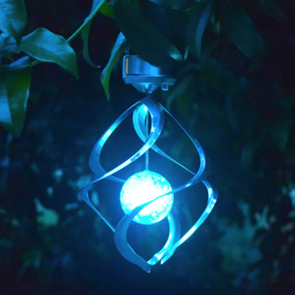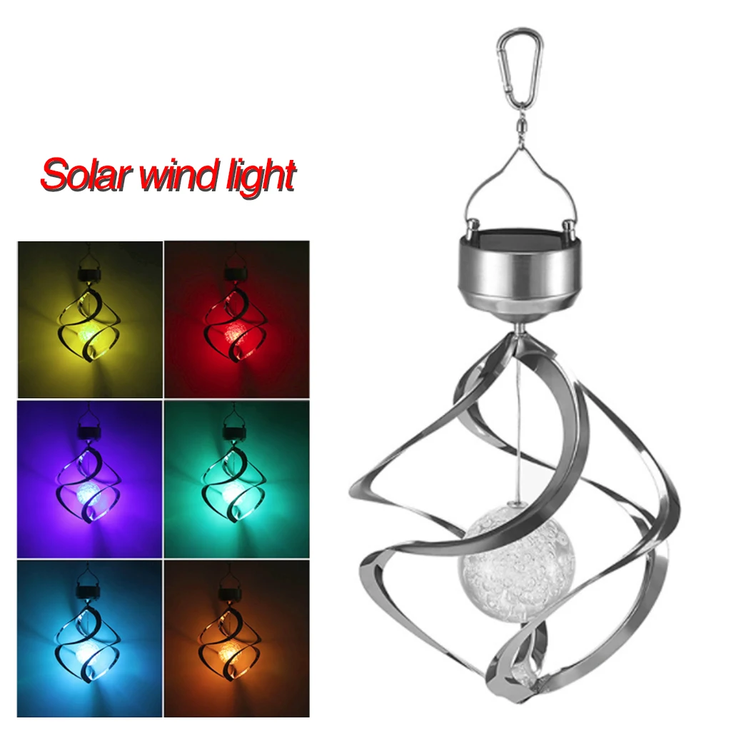 Это водонепроницаемый светодиодный светильник солнечной энергии для сада, траектории и открытого бассейна. Его внутренняя солнечная панель поглощает солнечную энергию в течение дня и автоматически включается в сумерках, чтобы произвести мягкий и тонкий эффект освещения. Поставляется с крючком сверху, можно легко повесить на дерево или окно. Мобильный колокольчик ветра имеет уникальный дизайн с 7 меняющимися цветами. Идеально подходит для освещения дорожек, садов, бассейнов или в любом месте, необходима небольшая атмосфера и элегантность.