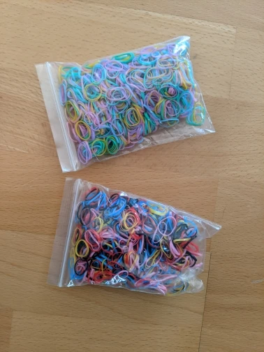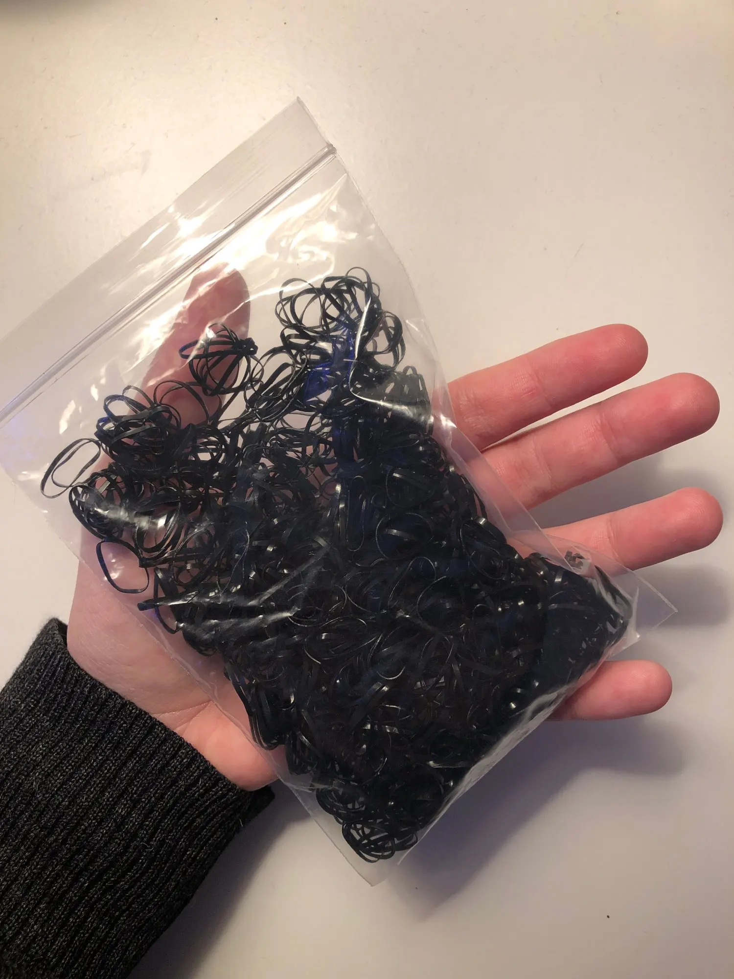 Доставка 2 недели в Канаду. Резиновые ленты диаметром около 1,2 см, поэтому они не очень большие. Я не подсчитывал, сколько в сумке, но они выглядят так же, как на фотографиях. Спасибо!