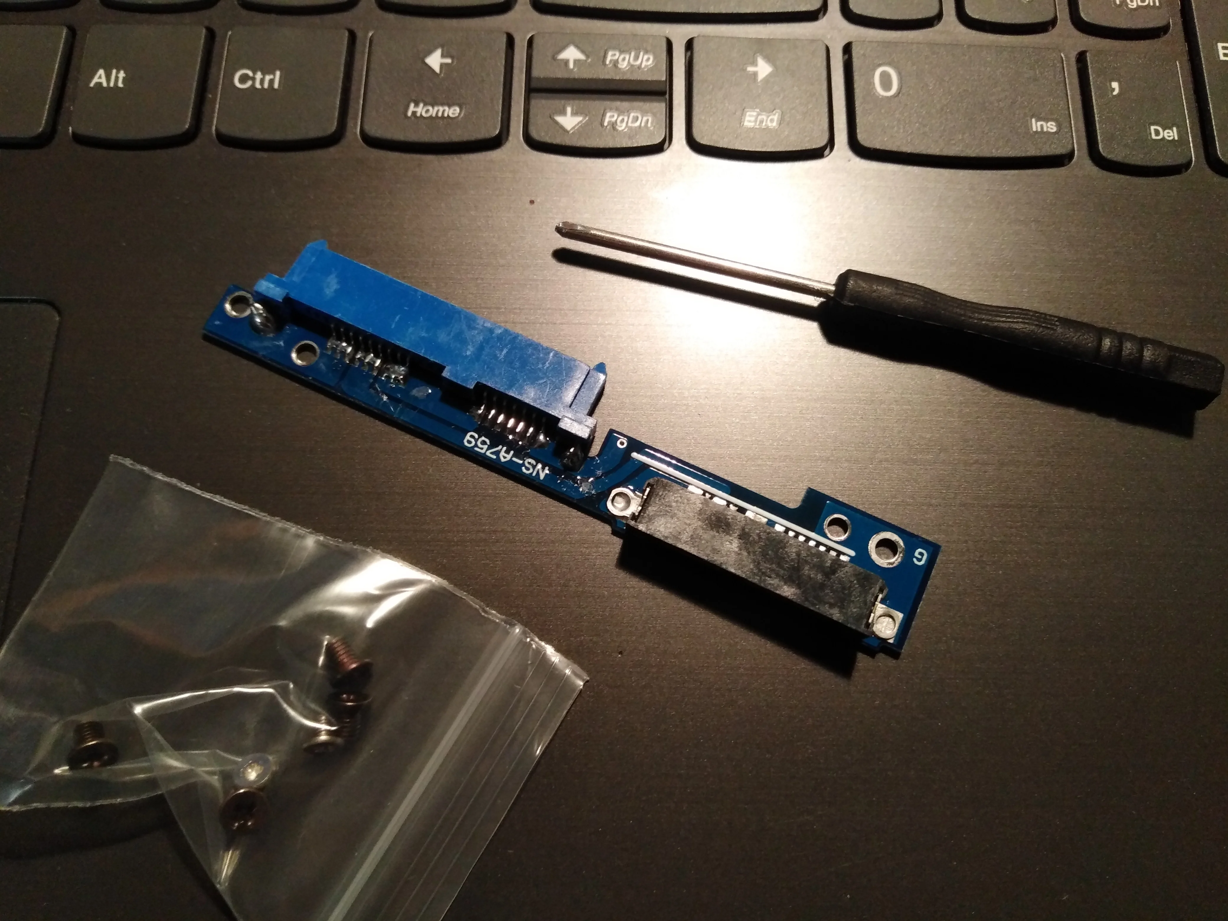 спасибо продавцу, доставка около месяца, в комплекте ещё 4 винтика для крепления жёсткого диска/SSD, отвёртка и 2 винтика для крепления платы, но выкручивать их было не куда. жёсткий диск сразу определся и работает. рекомендую