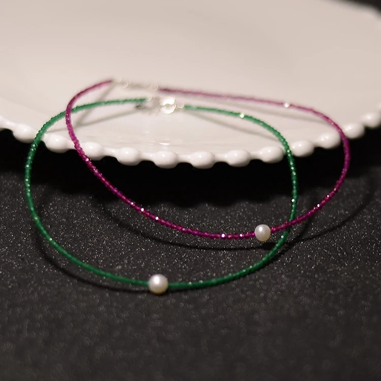 Ожерелье-чокер из натурального жемчуга, зеленогокрасного цвета, граненый, 2 мм, FPPJ, 2018