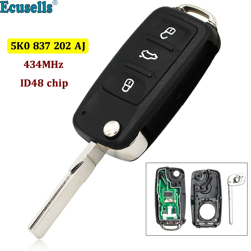 3 кнопки дистанционного флип-ключа 434 МГц 5K0 837 202 AJ с id48 чип внутри
