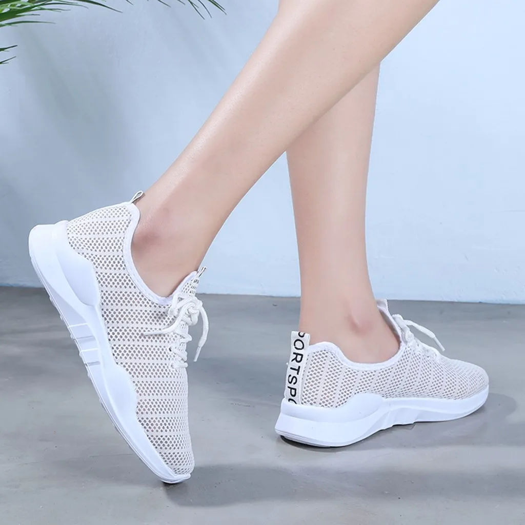 Кроссовки женские спортивные на шнуровке, резиновая модная сетчатая обувь для начинающих, с круглым ремешком, кроссовки на плоской подошве, повседневная обувь для бега