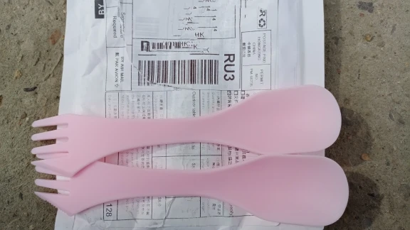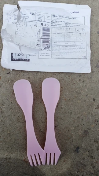 Толстая надёжная ложка. Форма необычная,нужно привыкнуть. Пока есть неудобно.Много еды ей не возьмёшь.