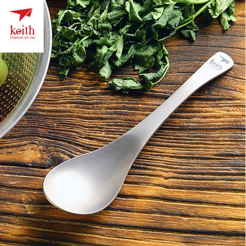 Титановая Ложка Keith, 1 шт., походная ложка, посуда для улицы, с длинной ручкой, 170 мм, легкая, для здоровья, титановый Титановая Ложка Ti5204