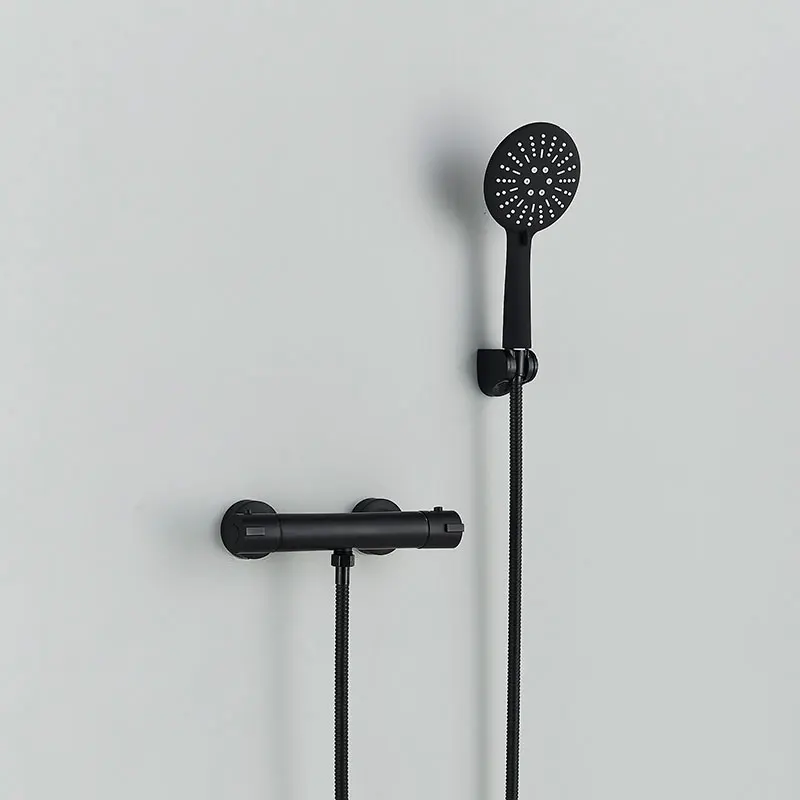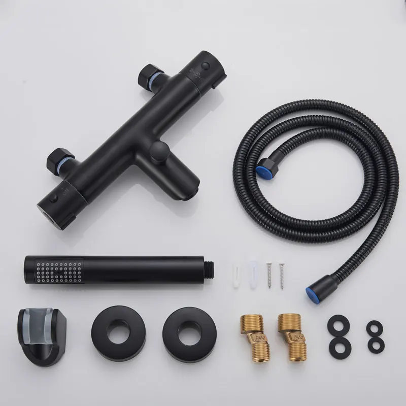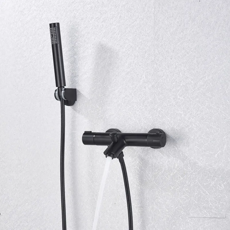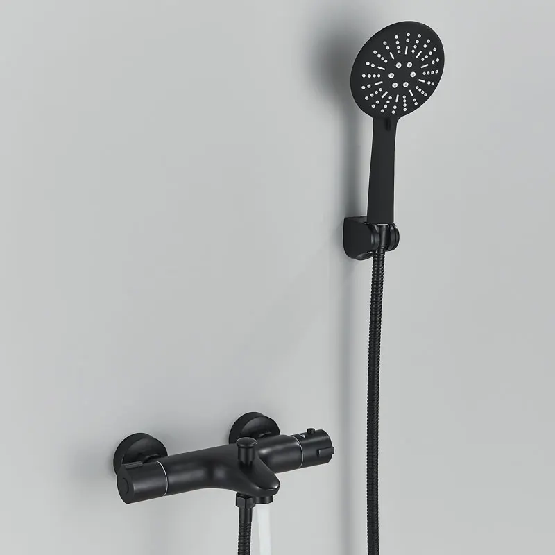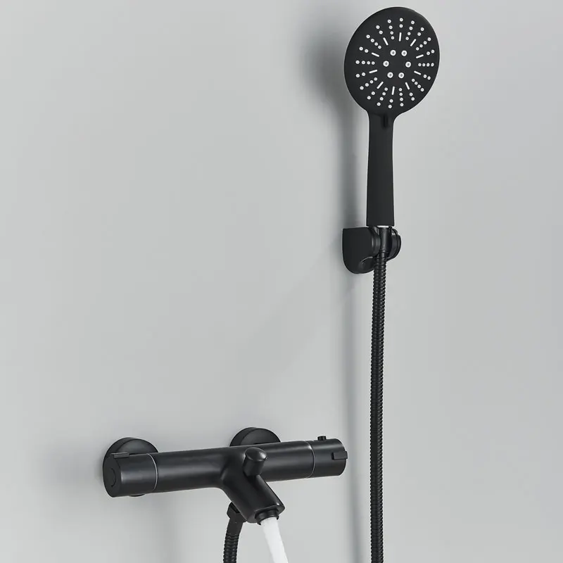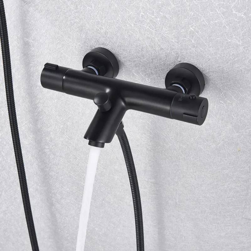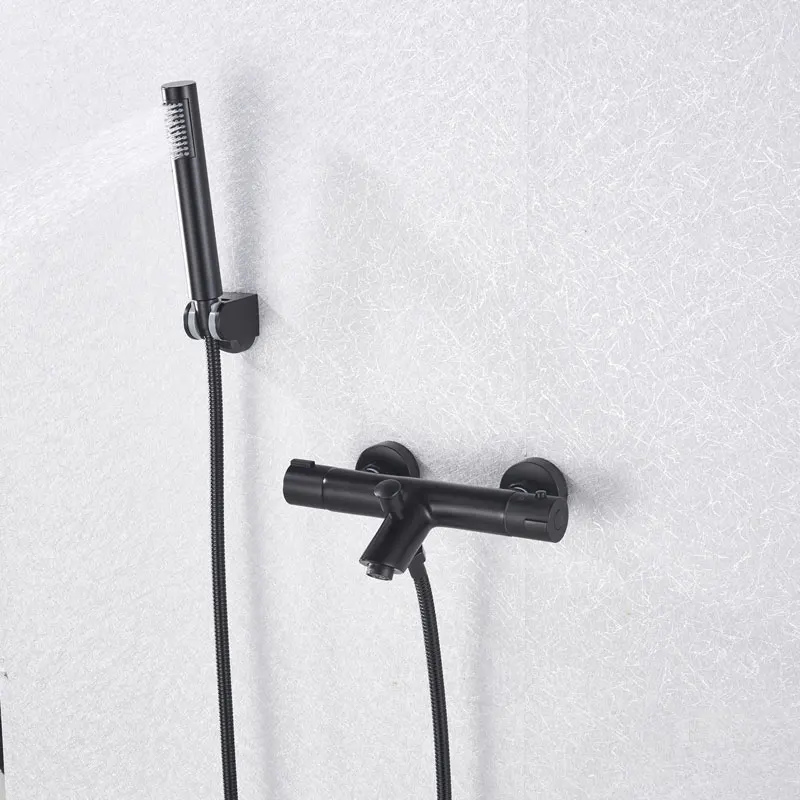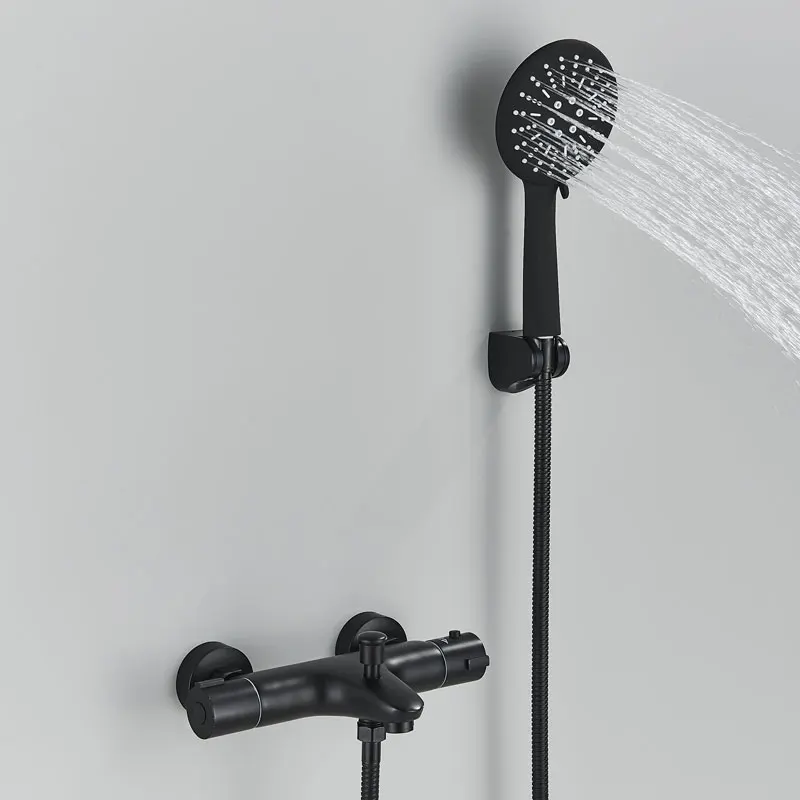 Черный хромированный смеситель для ванны Термостатический корпус скрытый душевой набор настенное крепление для душа Горячий Холодный латунный Смеситель для ванны душевой