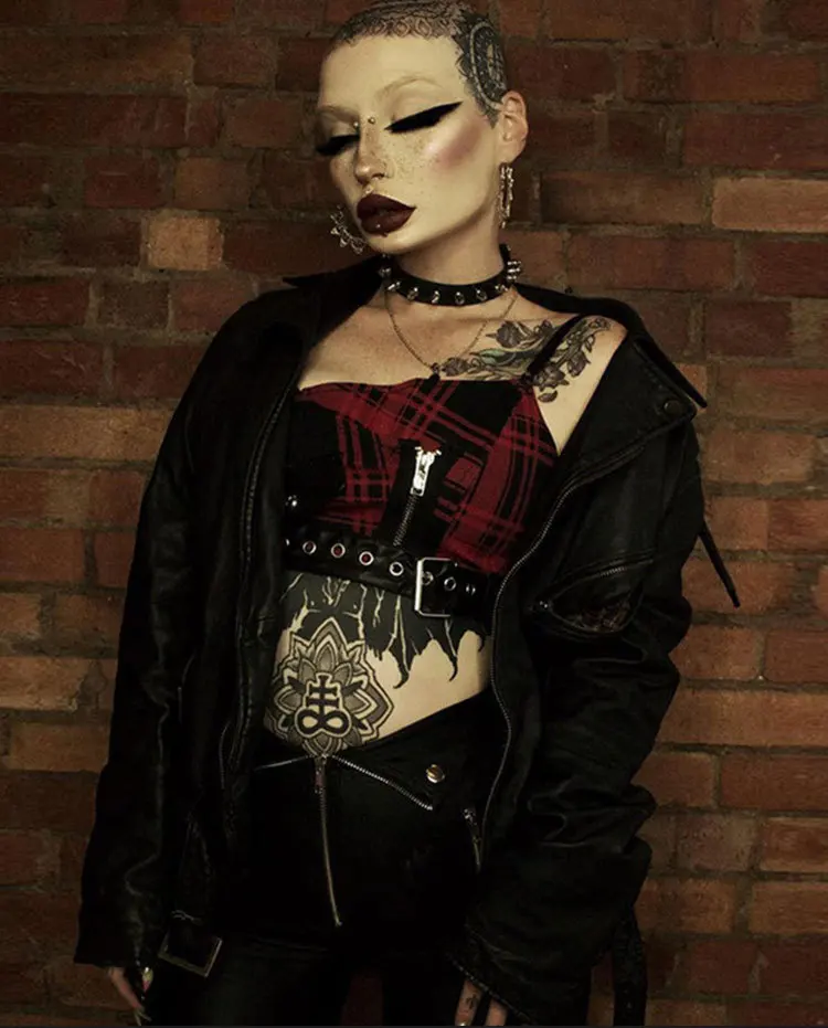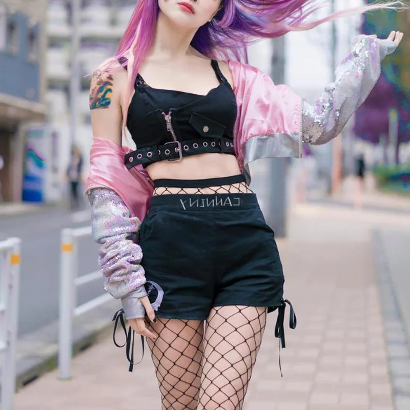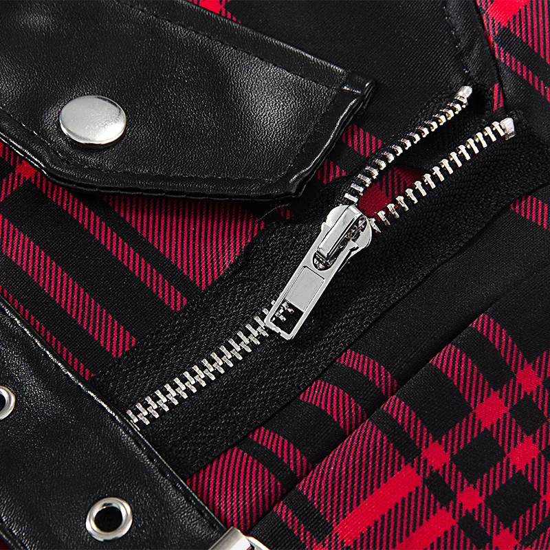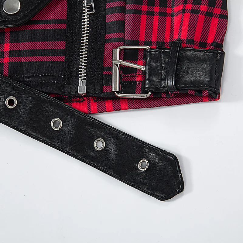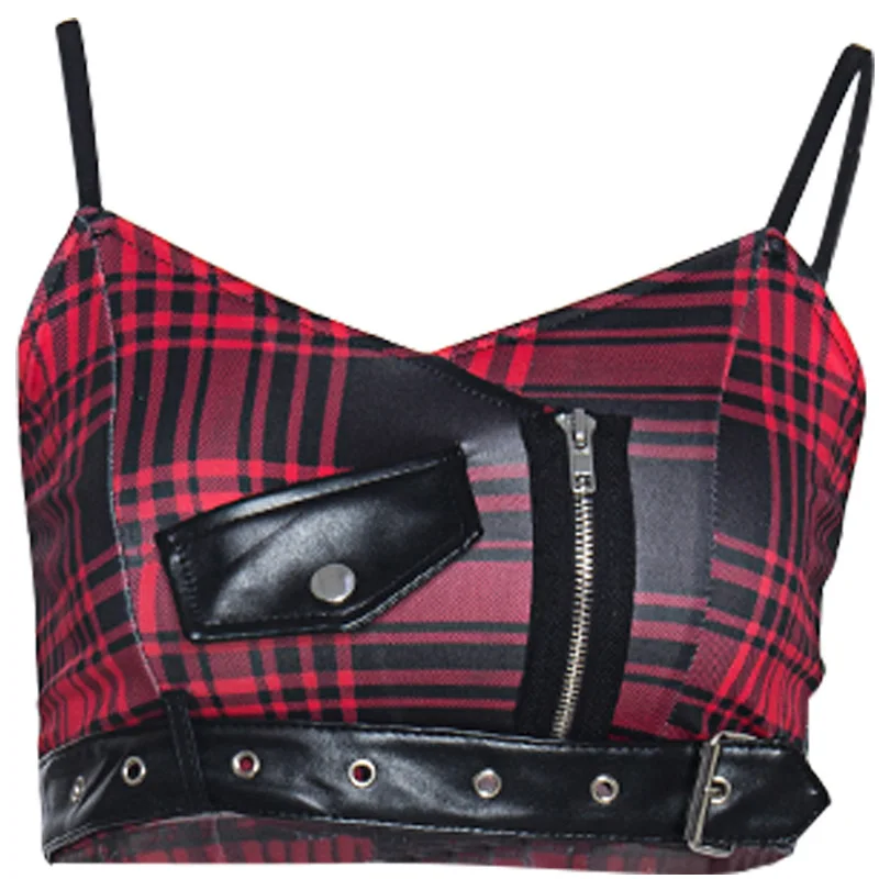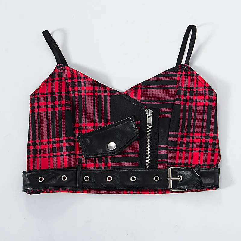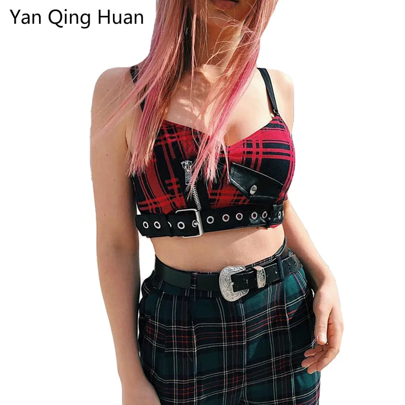 Ян Цин Huan, 2019 год, Летний жилет в клетку, в полоску, с заклепками, с бисером, короткий, на молнии, для пупка