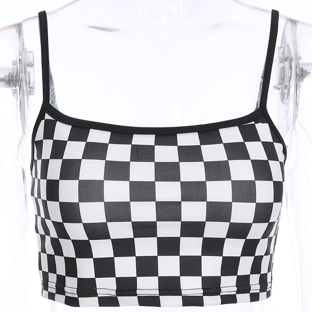 Укороченный топ в клетку без рукавов, летняя уличная одежда 2019, топы в шахматную клетку, рубашка в полоску, уличная одежда