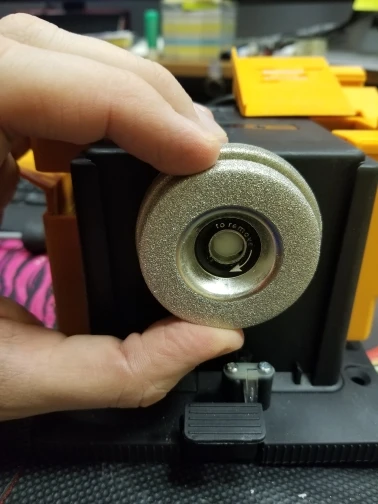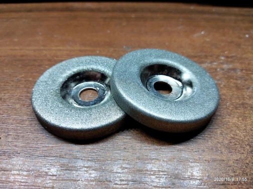 Не измерил перед заказом диаметр оригинального диска от заточной машинки (50мм), а прикинул на глаз и приехало это изделие на 55м. Но за 20 минут стамеской и притиркой пластиковых насадок об диск я подогнал все 3 насадки под новый диаметр. Пользоваться можно. Оригинальных 50мм с гридностью 300+ я не нашел на момент покупки.