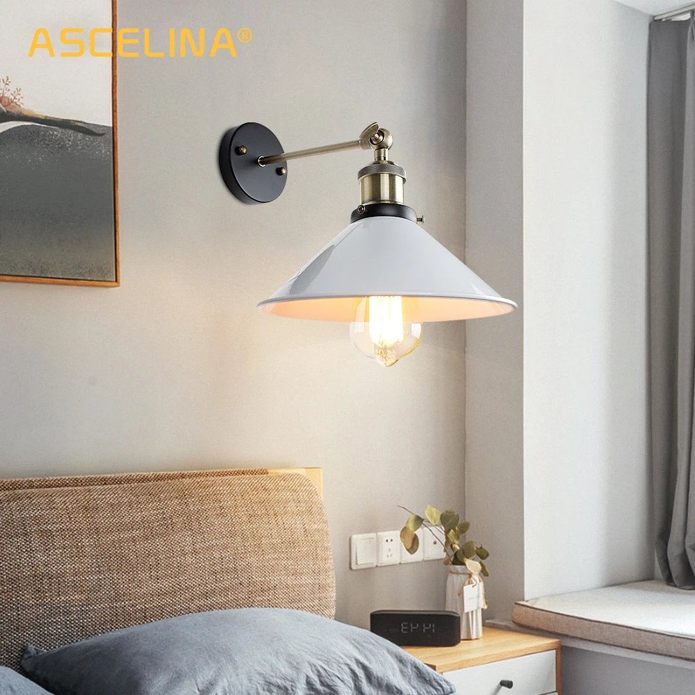 Винтажный настенный светильник, внутреннее освещение, настенный светильник с ручкой, ретро бра, черно-белое покрытие, прикроватные лампы, E27, для дома и магазина