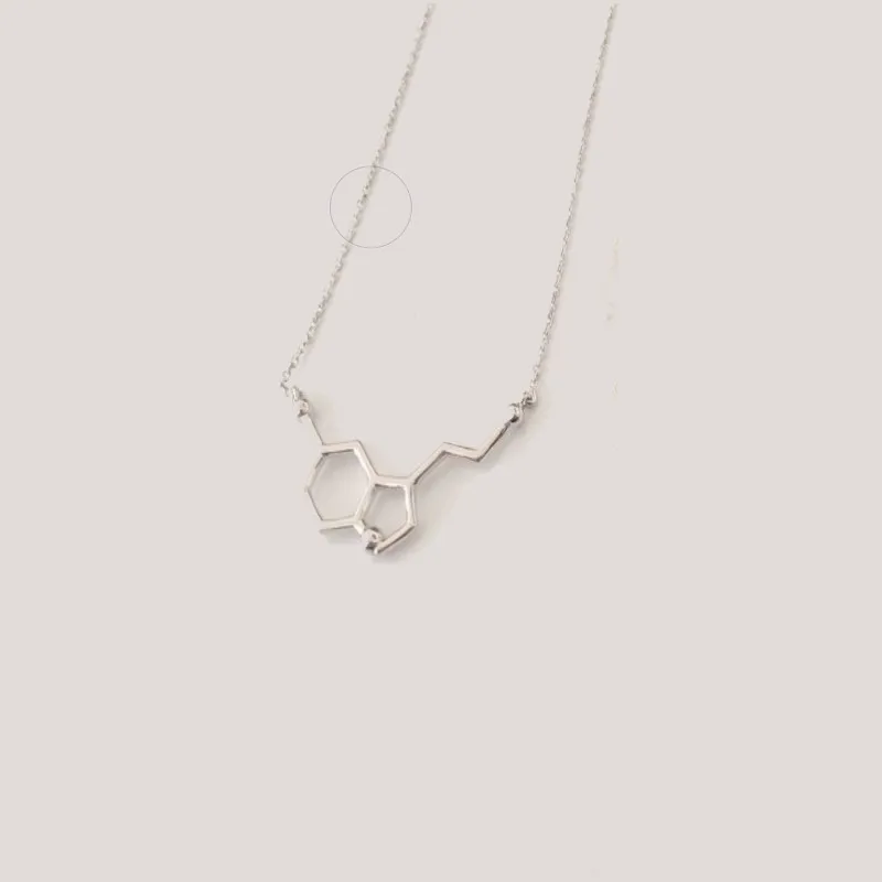 Женское серотонина серебряное ожерелье, серотонина из молекула серотонина, длинная цепочка для мужчин