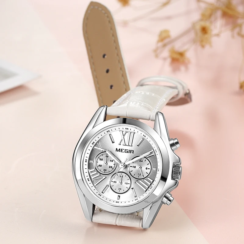 MEGIR женские модные повседневные кварцевые наручные часы с хронографом на кожаном ремешке деловые часы для женщин Relogios Feminiinos Clock 2020