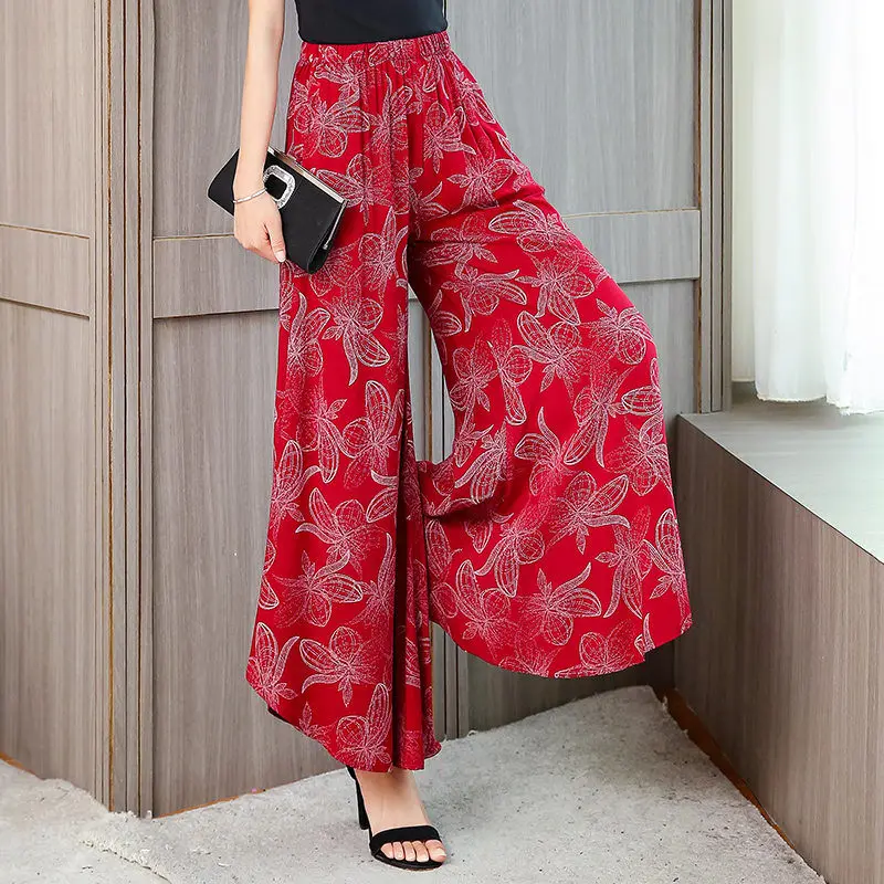Брюки женские повседневные с широкими штанинами, дышащие расклешенные штаны с высокой талией, с богемным принтом, 28 цветов, лето 2021