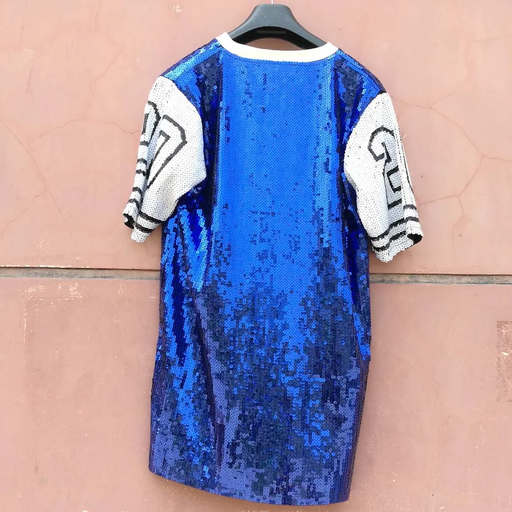 Длинный Блестящий женский топ для вечерние НКИ, свободная одежда, синий, белый, номер 20, ZETA PHI, BETA, Sorority, футболка с блестками, одежда