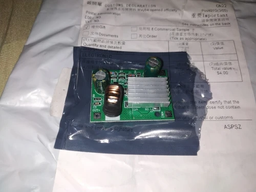 Пришло все быстро. товар не поврежен. хорошо упакован. Брал в машину для стабильного выхода напряжения с 14 до 5 вольт. Само качество платы очень хорошее. Рекомендую