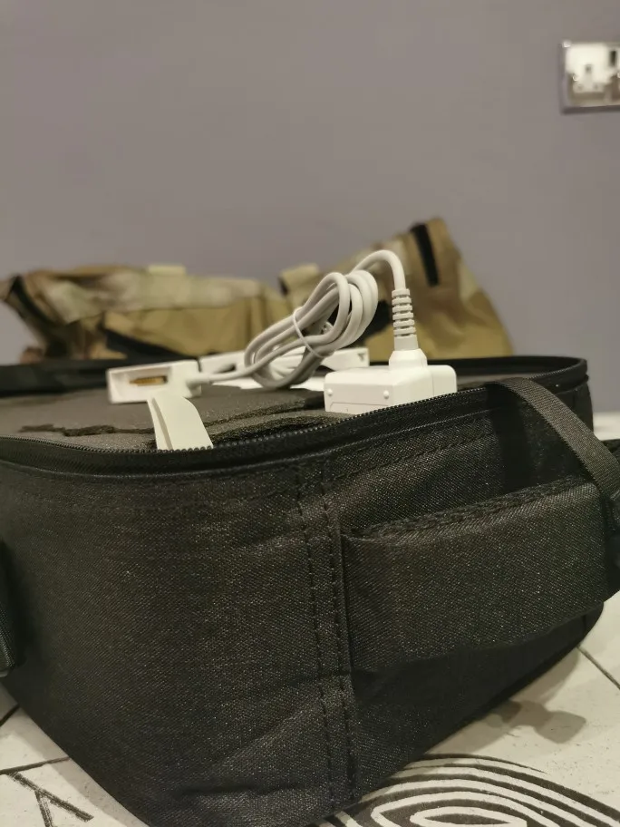 Зарядник не влезает по высоте (либо шнур будет сильно перегибаться) так, как это показано на их фотках. Но он отлично входит в отдельный карман, так что место есть всему с запасом, и это гораздо удобнее, чем штатная коробка, где всё болтается и грохочет. Всячески рекомендую! Главное не забудьте взять пластиковый кофр на камеру за 200р, сюда дрон входит туговато и свернуть камеру при доставании хотелось бы меньше всего.