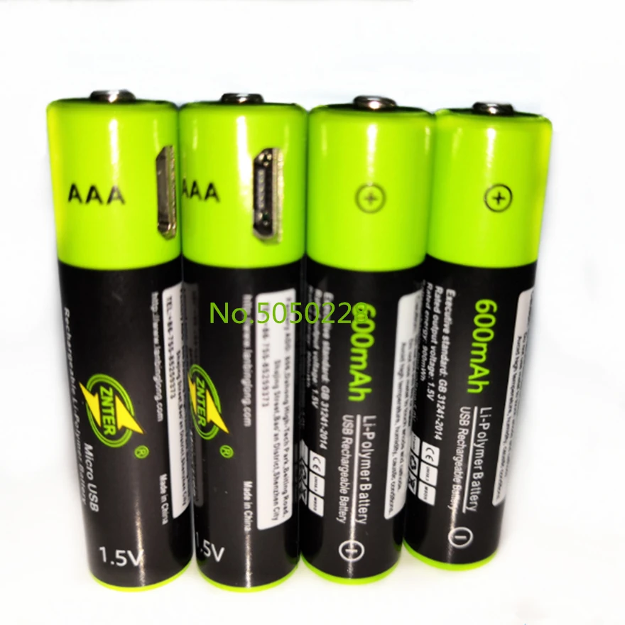 4 шт.лот ZNTER 1,5 в AAA перезаряжаемая батарея 600 мАч USB перезаряжаемая литий-полимерная батарея Быстрая зарядка через кабель Micro USB