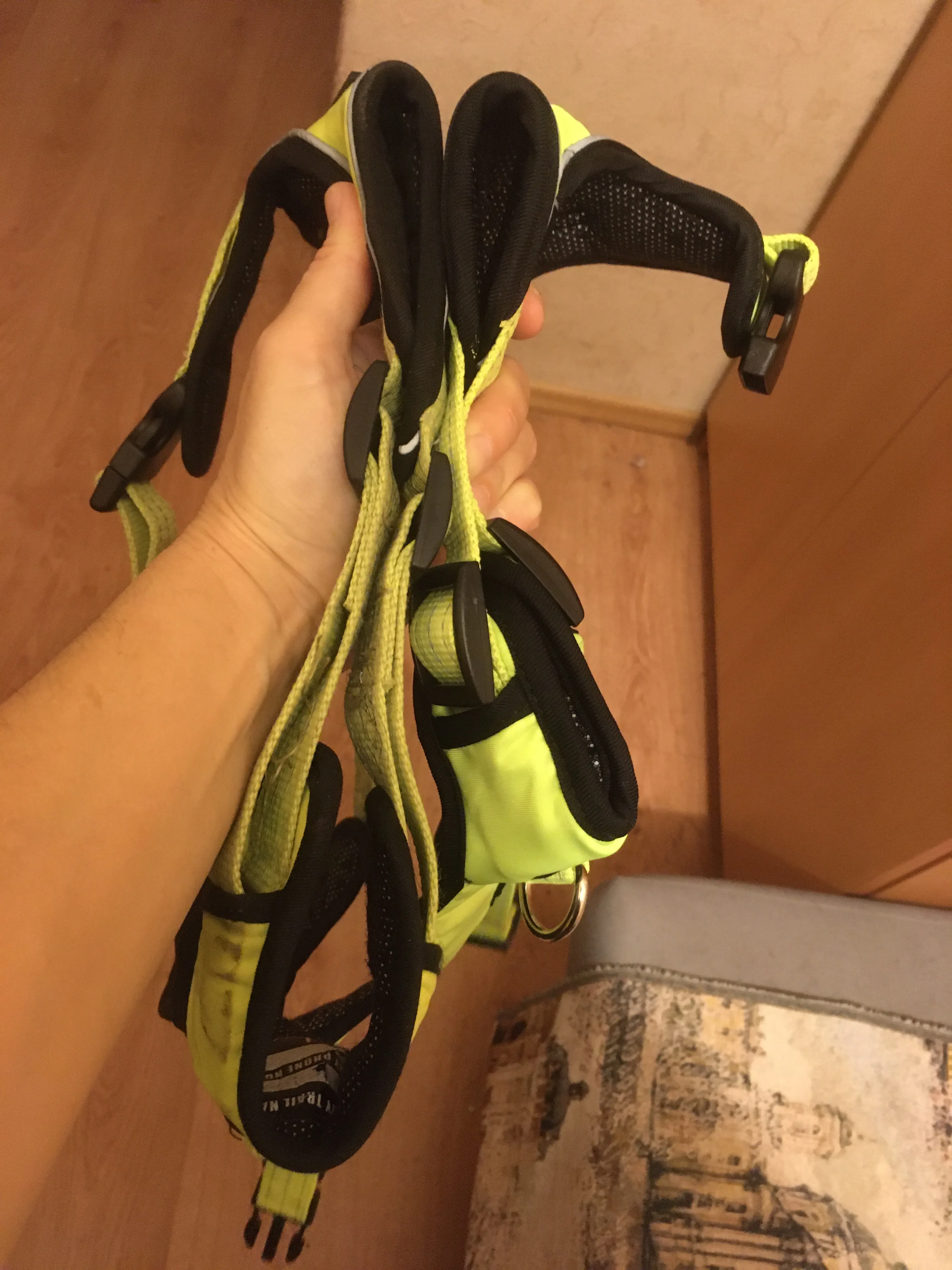 Хорошая штука,сделано качественно,плотная ткань,есть светоотражающие элементы,никаких торчащих ниток,купил на щенка 5 месяцев,как раз на вырост хватит,верхнее и нижнее кольца литые,не разогнуться.