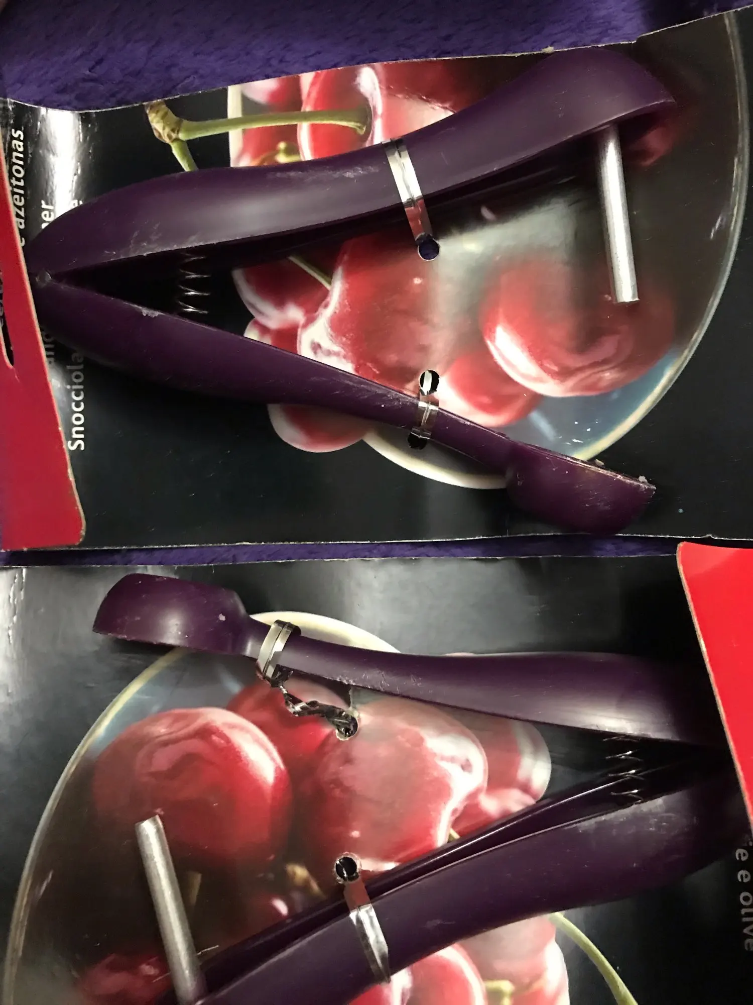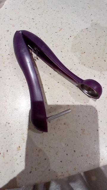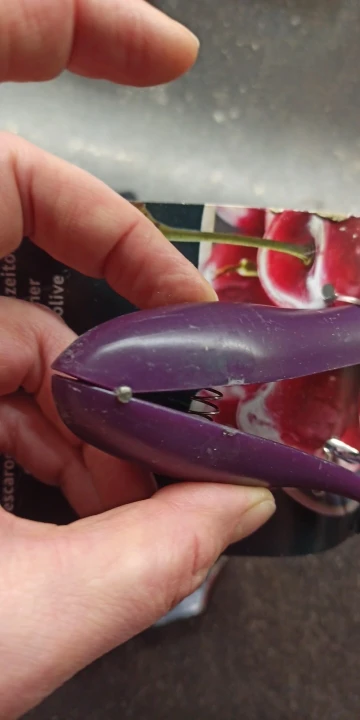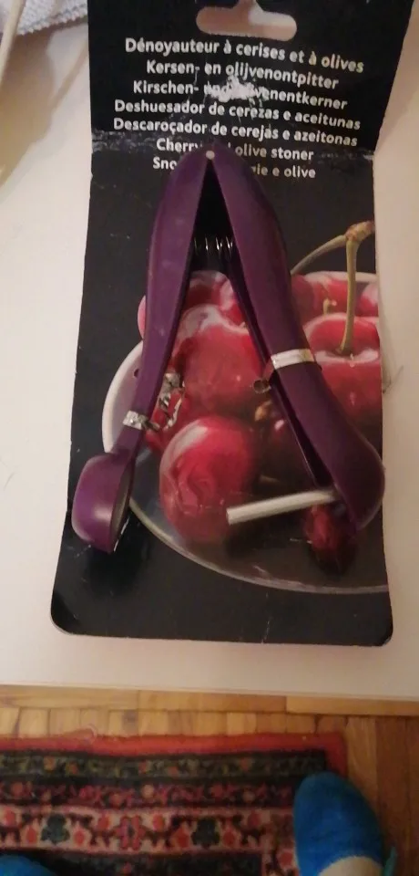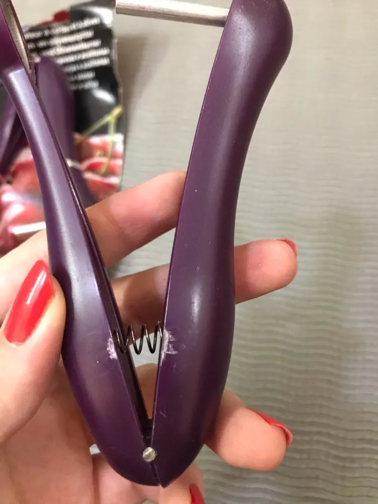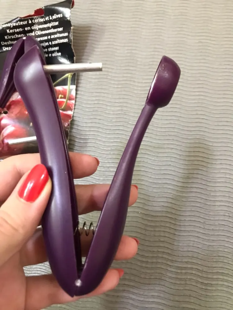 Такие приспособления лучше в глаза видеть прежде, чем покупать. Само изделие кривое и поцарапанное пришло, просто ради 150 р неохота возиться с возвратом. Рассчитано на гигантские какие-то вишни. Если найду, куда забросила, сделаю фото этого девайса...