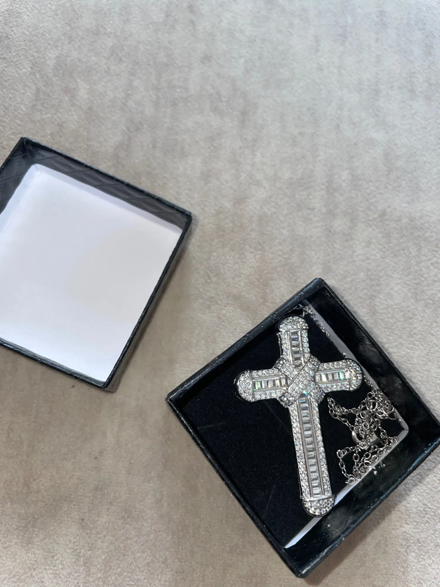 Женское ожерелье с кулоном в виде Креста из серебра 925 пробы с фианитом