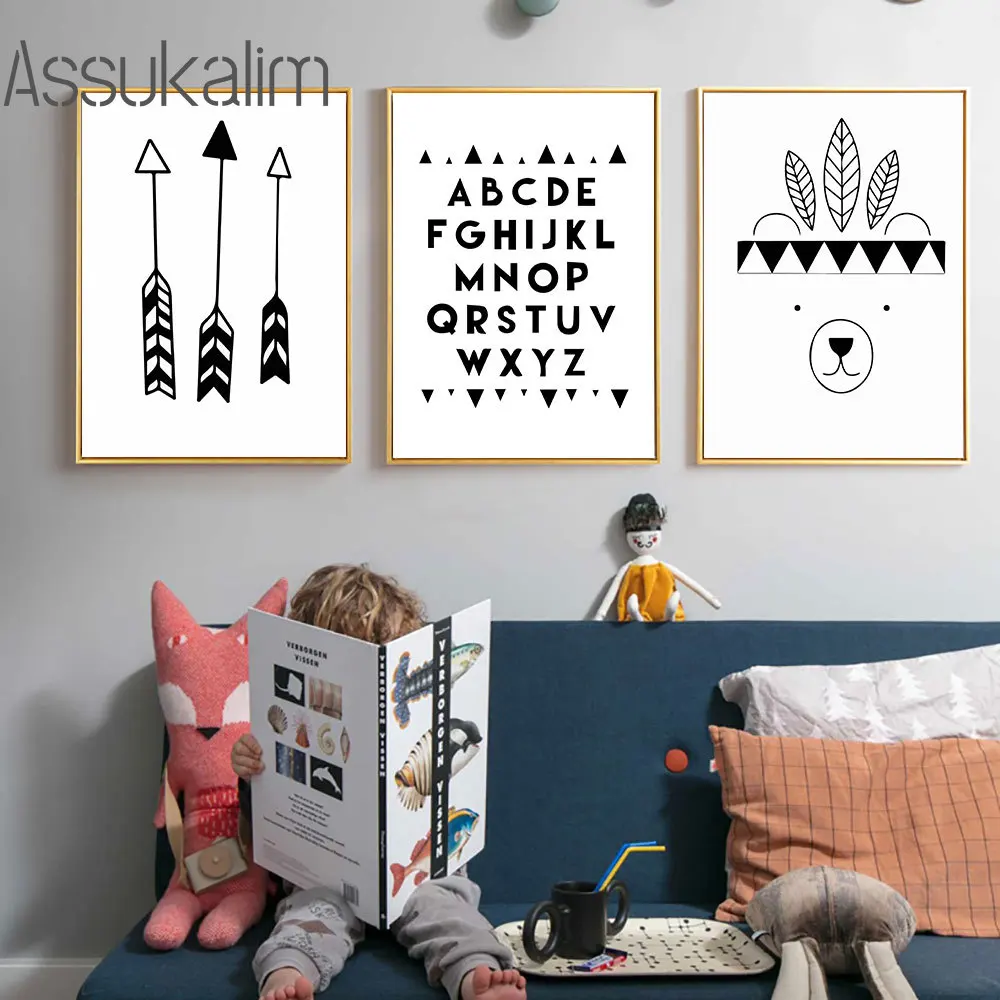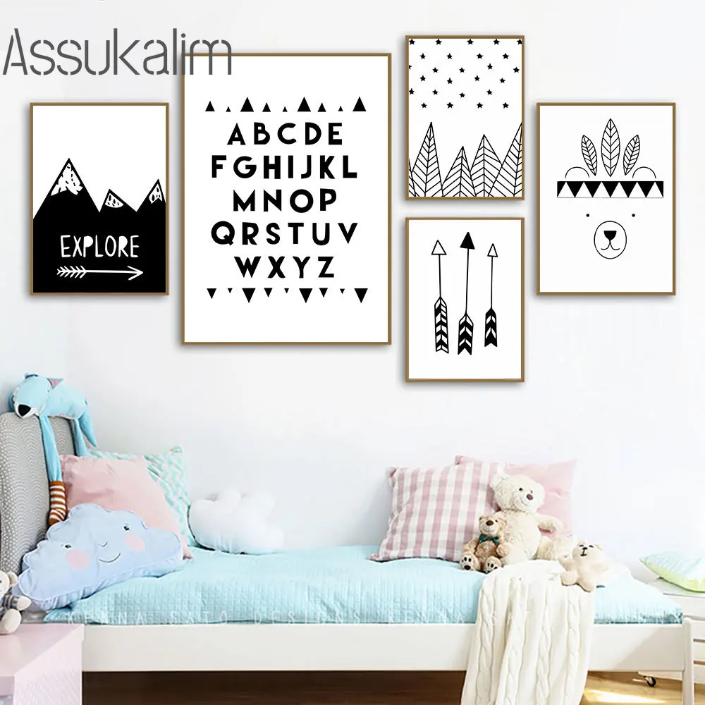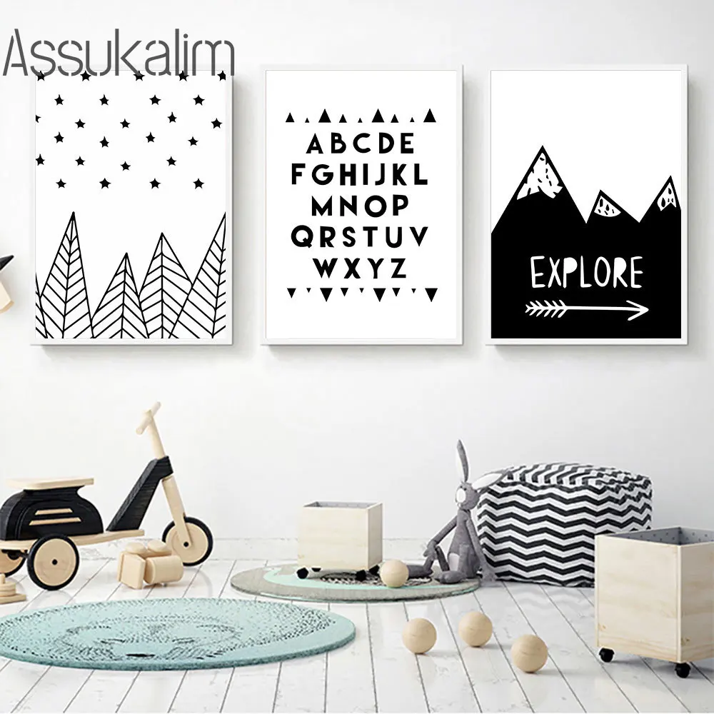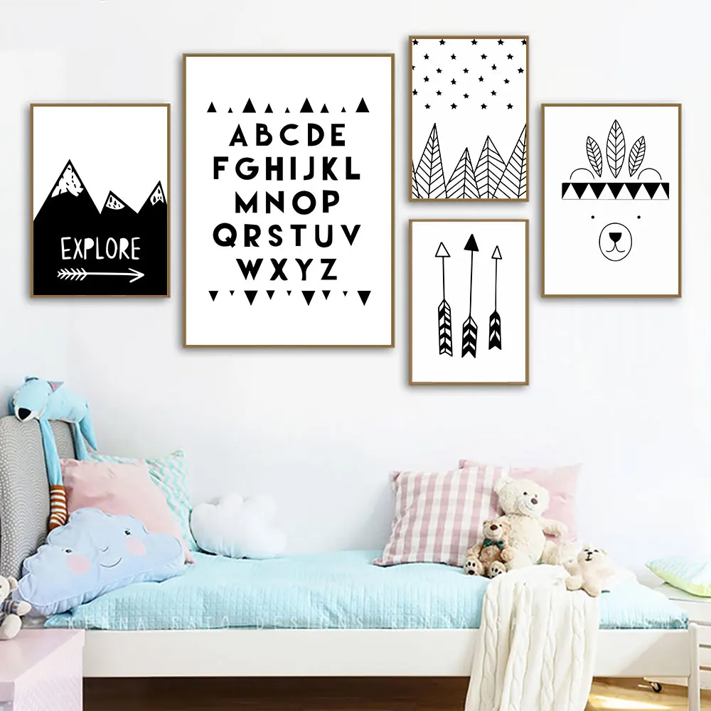 Настенные плакаты для детской комнаты, картины с алфавитом, солнце,...