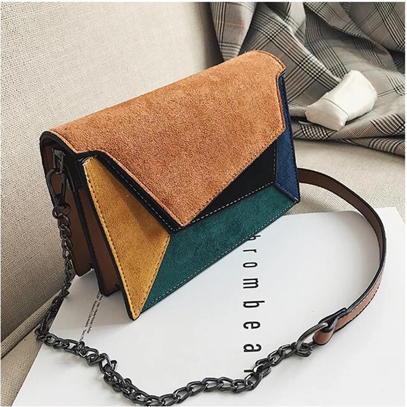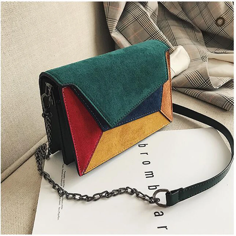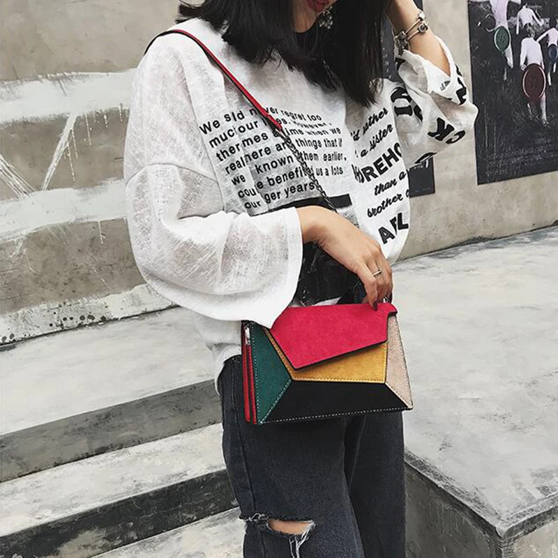 Женская маленькая сумка-конверт, матовый мессенджер на плечо из искусственной кожи со вставками, Модный маленький квадратный саквояж, весна-лето