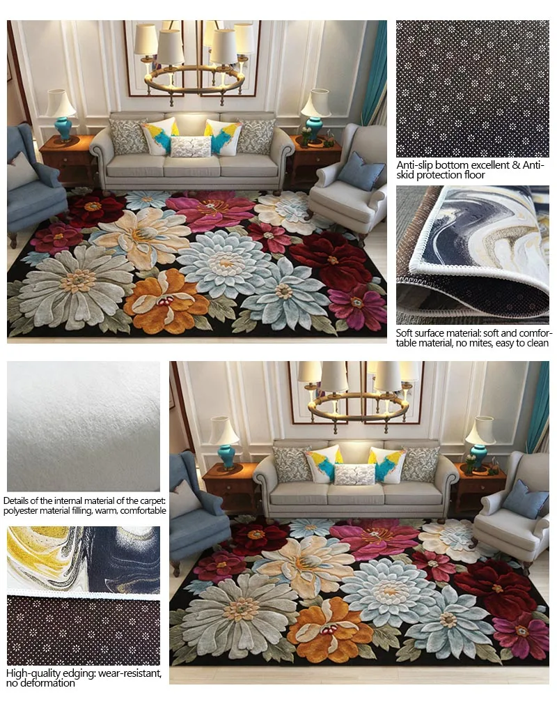 3D бархатные ковровые покрытия в европейском стиле с цветочным узором и кристаллами для гостиной, дивана, журнального столика, коврики, домашний декоративный коврик для спальни
