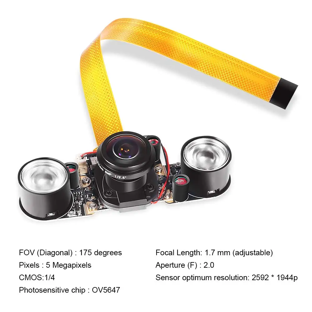 Это ИК-камера «рыбий глаз» (широкоугольная) на 175 градусов для Raspberry pi 2 Raspberry pi 3B и 3B +. Вы можете использовать ее для съемки широкоугольной картинки или видео с помощью этой камеры.