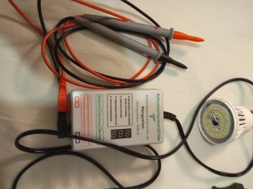 Хороший прибор. Стало удобно проверять светодиодные лампочки. Понравилось, рекомендую. Доставка быстрая. Прибор сам определяет нужное напряжение для светодиода или всей линейки.