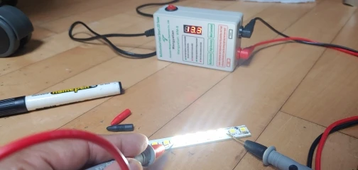 проверили, отлично работает. от лабораторника зажигает все сразу, а этот не все зажигает, проверяли на новых лентах , новые все зажигает, значит рабочий. цена хорошая и качество тоже.