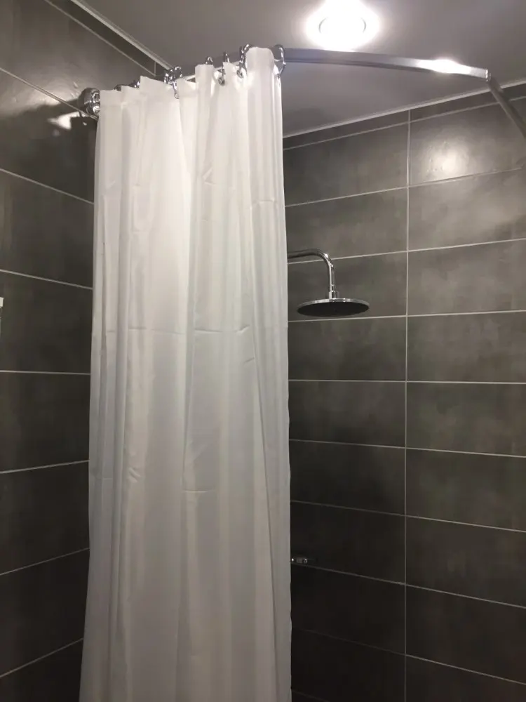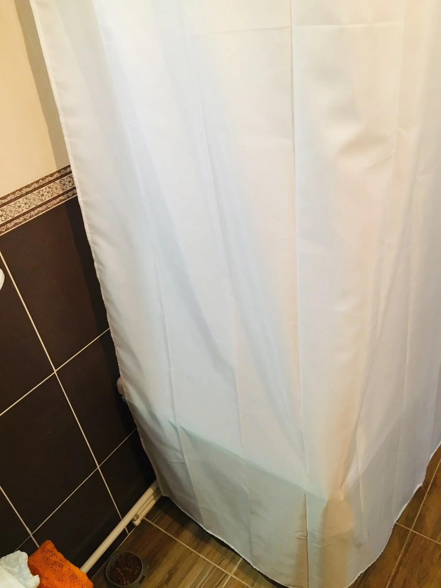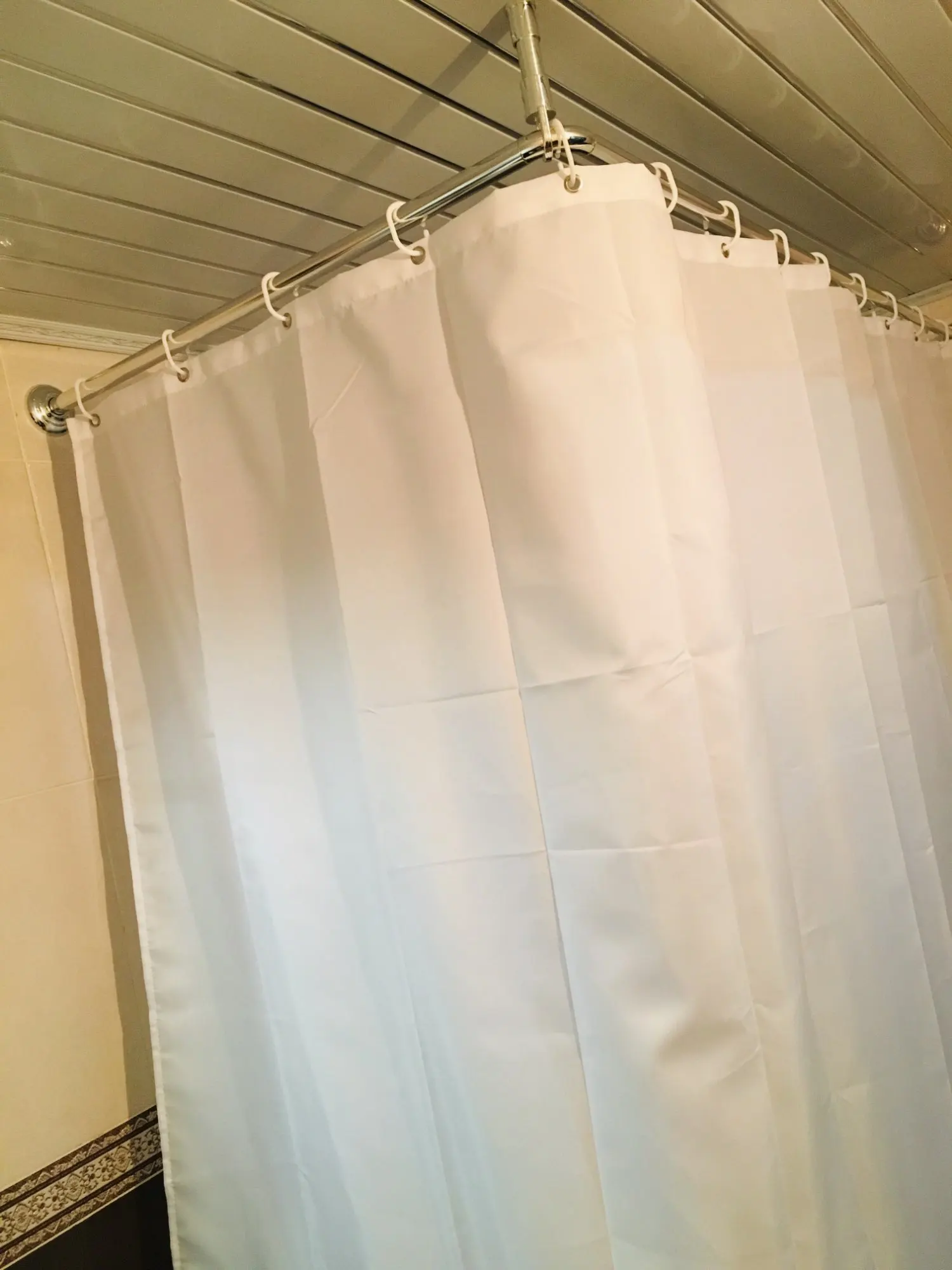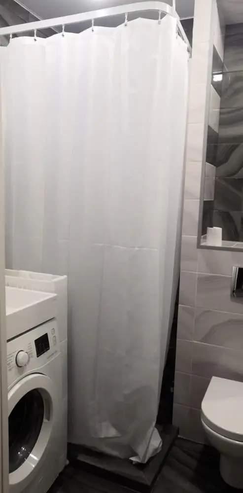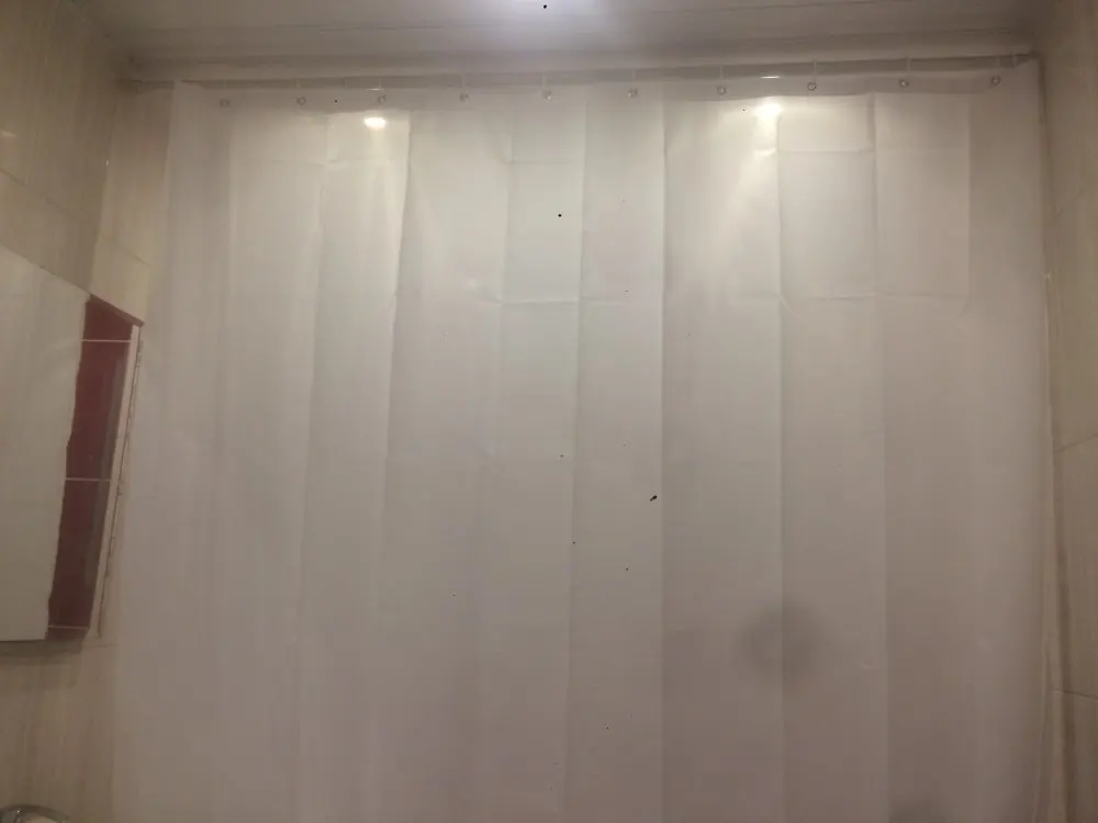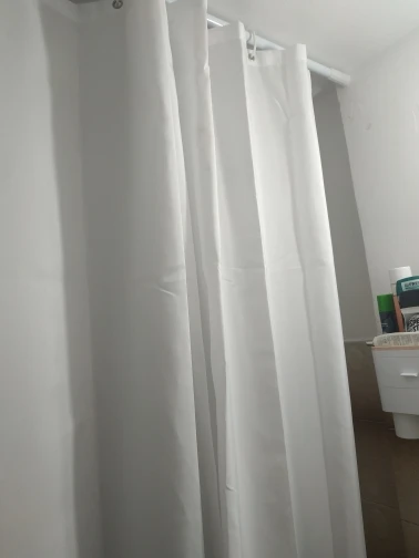 нужна была длинна штора и этот вариант был чуть ли не единственным. хорошая, белая. но не очень плотная из-за этого липнет к телу в душе. обидно