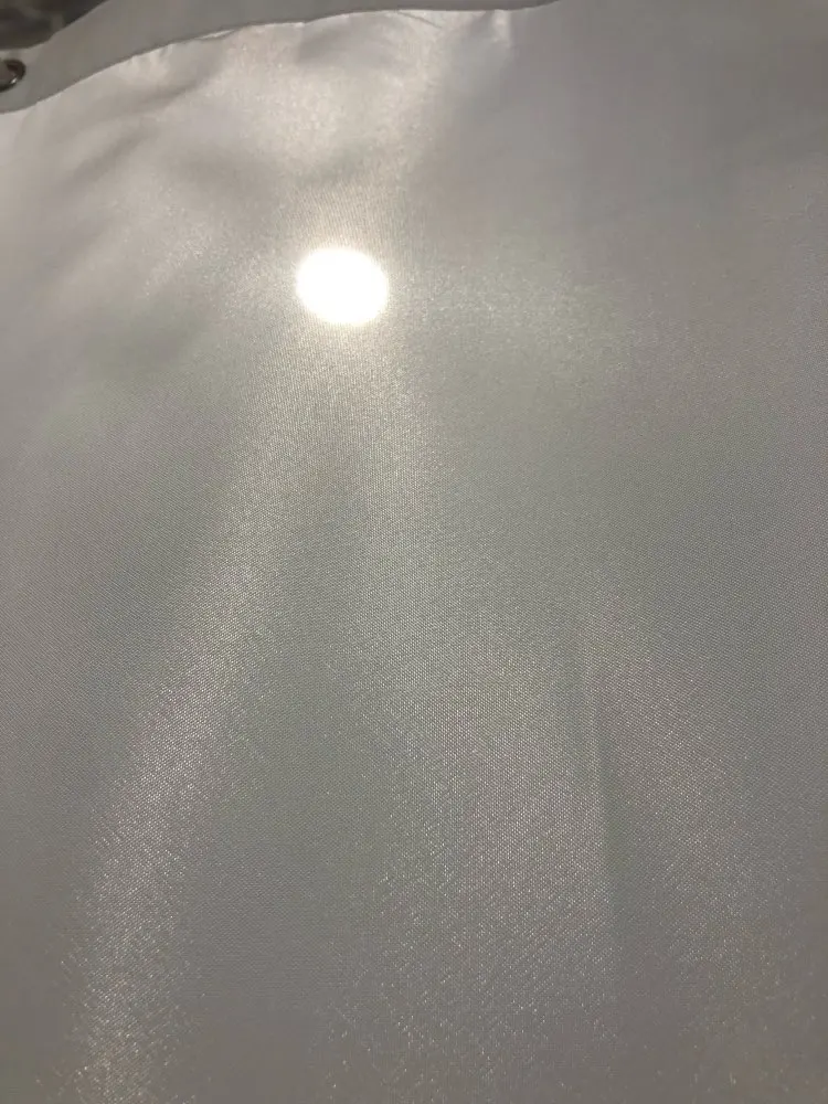 Отличное качество. Похоже на ткань, а не на полиэтилен. Внизу вшит утяжелитель. Пришло быстро- меньше 2х недель до Москвы