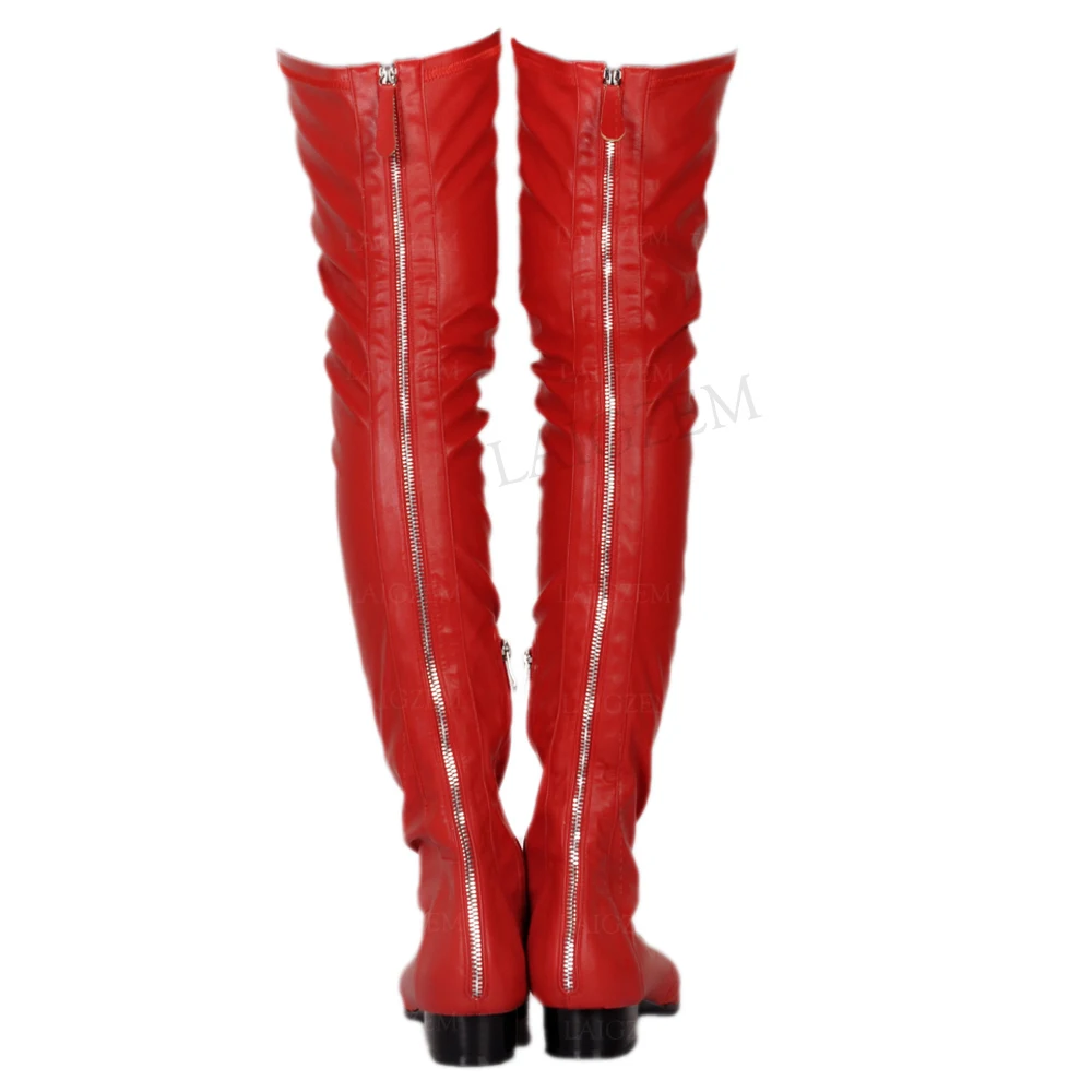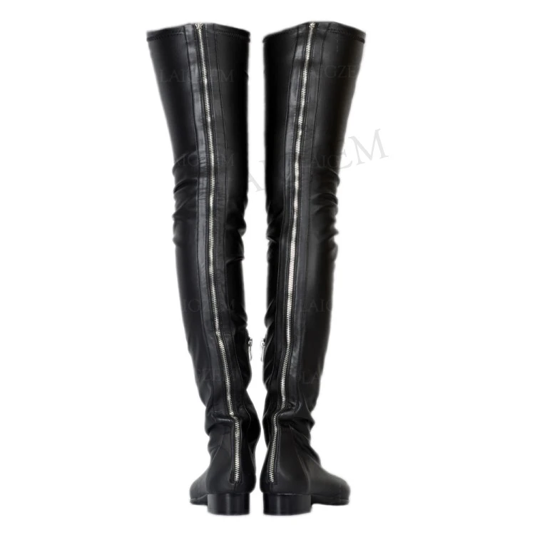 LAIGZEM/женские сапоги; Сезон весна-лето; Высокие сапоги до бедра; Женская обувь из искусственной кожи на низком массивном каблуке; Botines Mujer; Большие размеры 34-47.